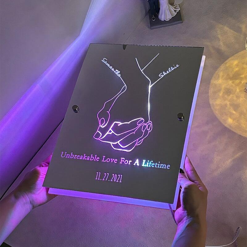 Personalized Mirror Lamp Customized Couple Name Gift For Valentine's Day