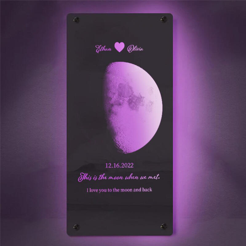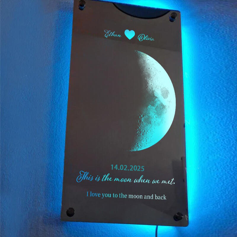 Personalized Mirror Lamp Customized Moon Phase And Text Warm Gift For Valentine's Day