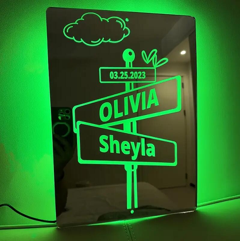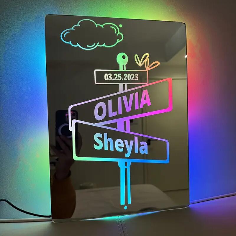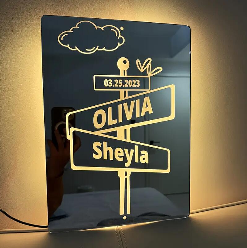 Personalized Mirror Lamp Customized with Couple's Name and Date Sweet Gift