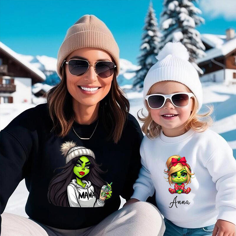 Personalized Mom And Kid Sweatshirt With Pattern Warm Gift For Christmas