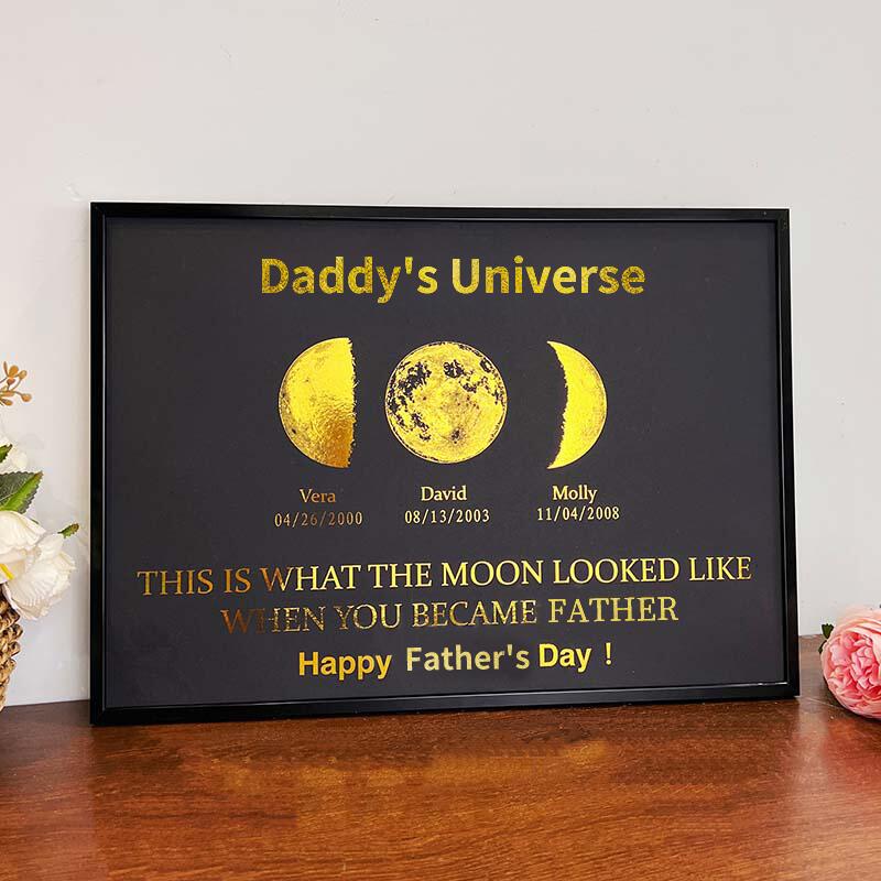 Personalized Moon Phase Frame Foil Print Stylish Present for Best Daddy