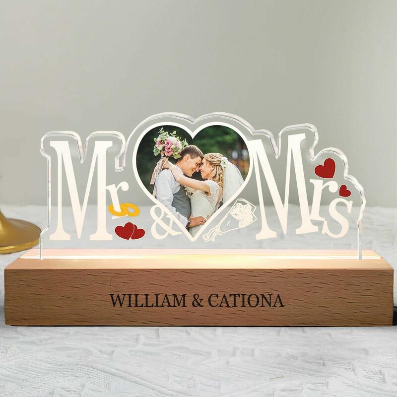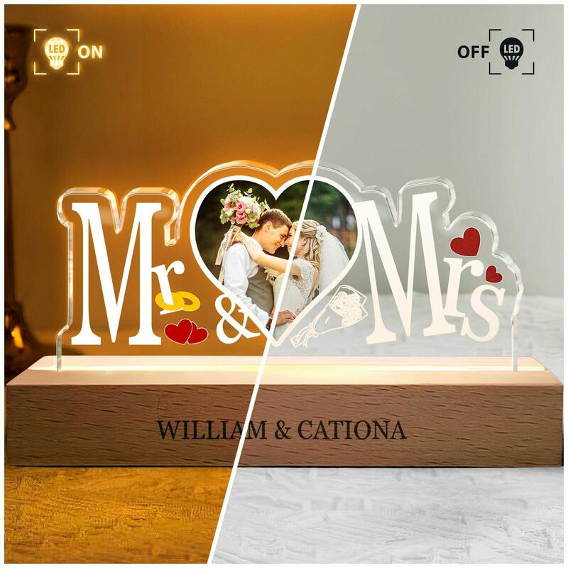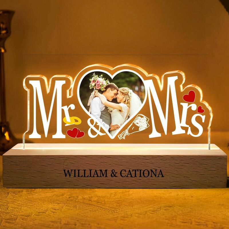 Personalized Mr And Mrs Led Light Custom Heart Photo For Couple
