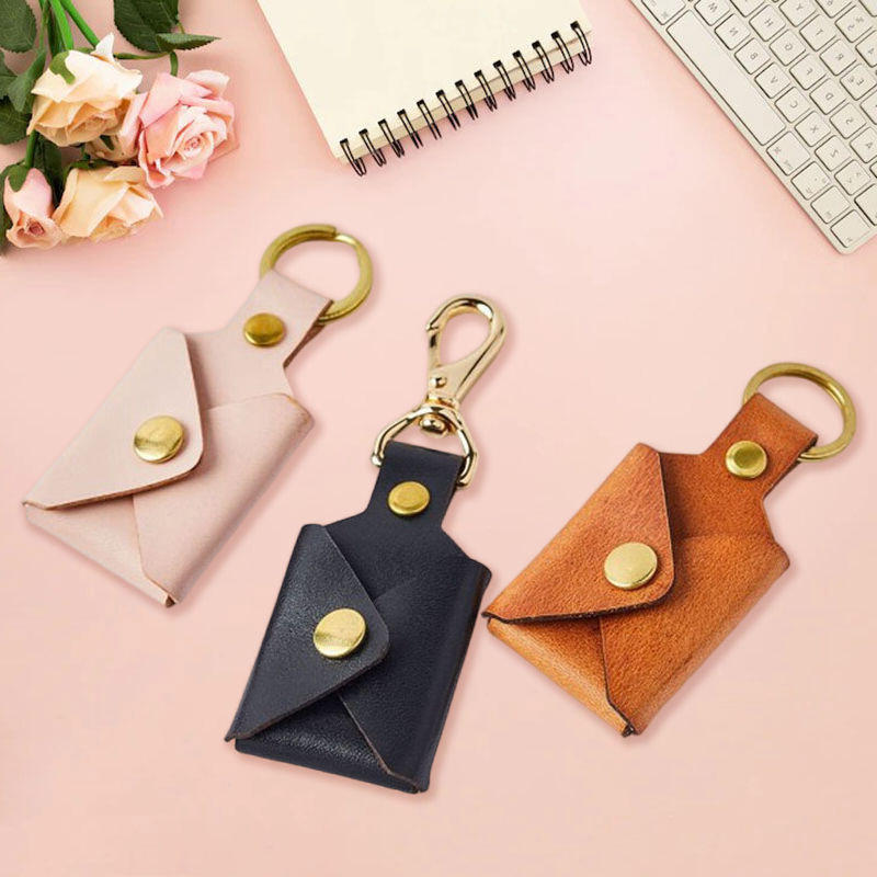 Personalized Multi Photo Leather Envelope Keychain for Girlfriend