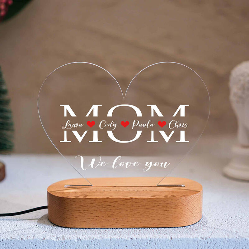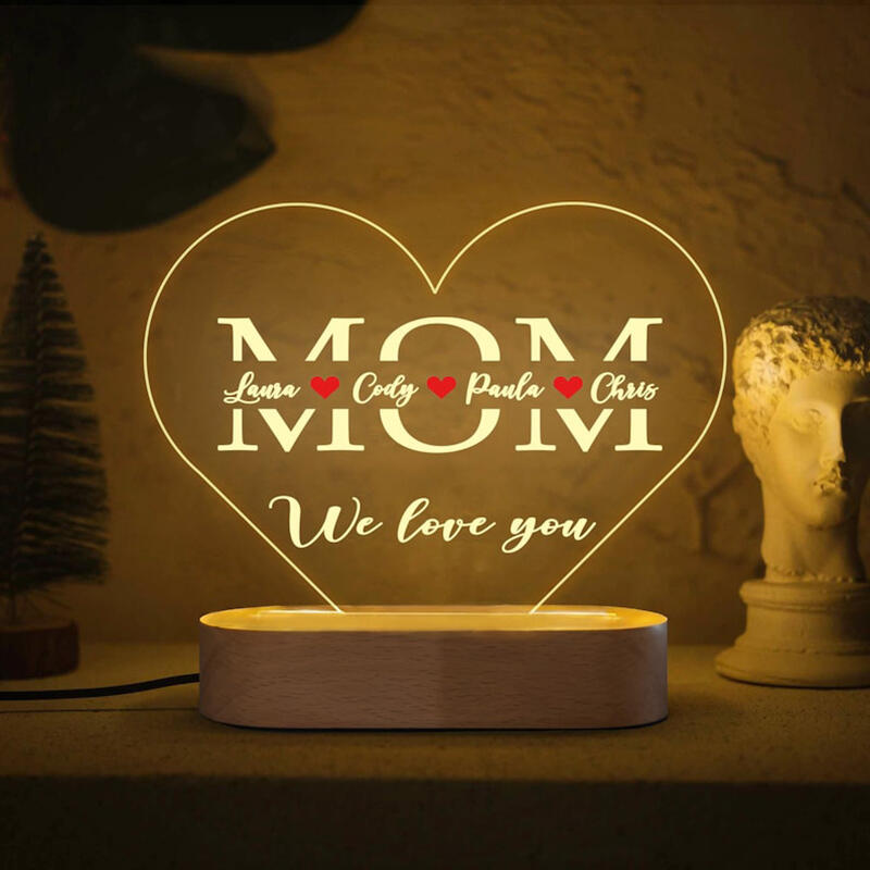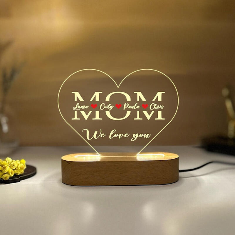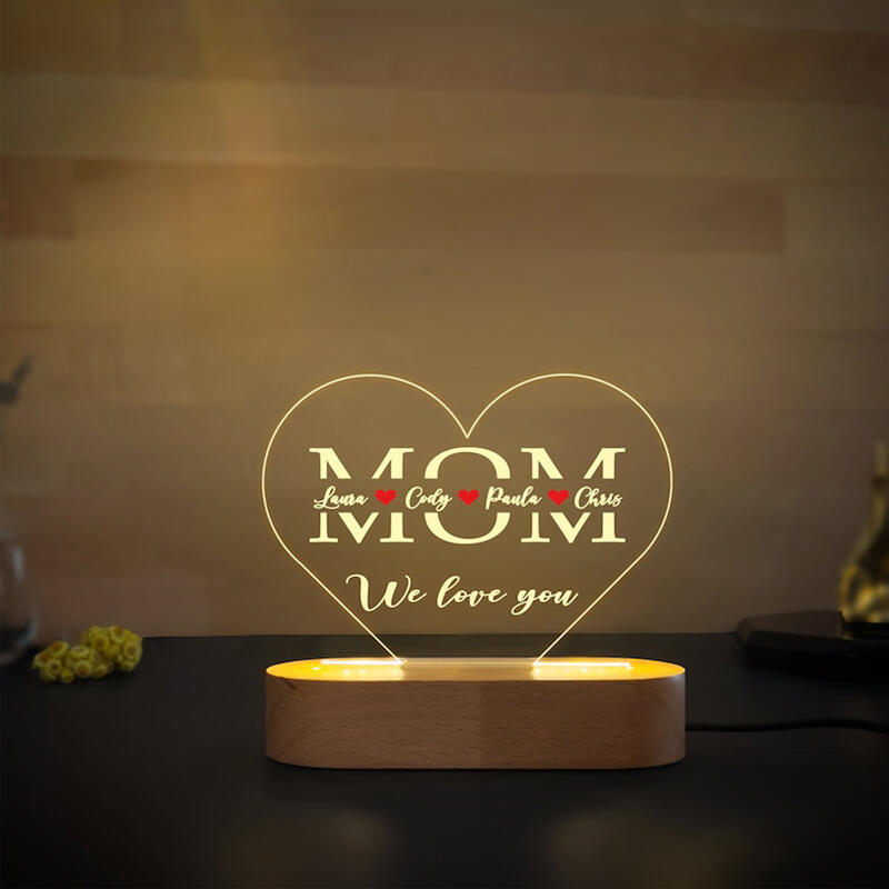 Personalized Name Acrylic Lamp Heart Shaped Exquisite Design Gift for Mother