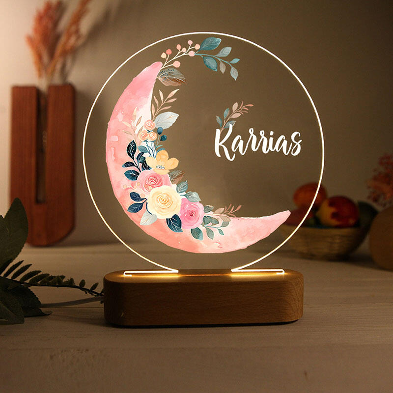 Personalized Name Acrylic Lamp with Beautiful Moon Pattern Best Gift for Kids