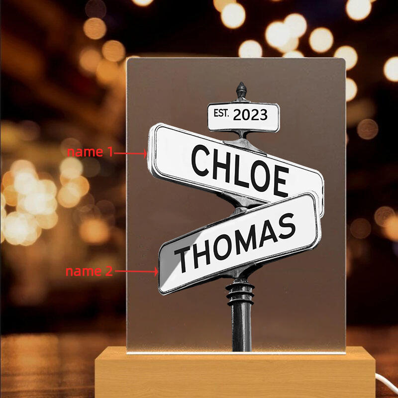 Personalized Name Acrylic Lamp with Street Sign Pattern Unique Gift for Couples