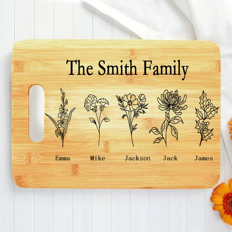 Personalized Name And Birth Flower Charcuterie Board Beautiful And Unique Gift for Her