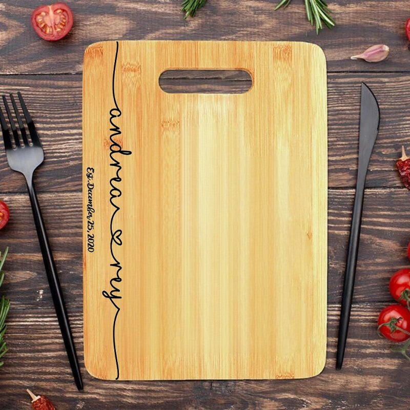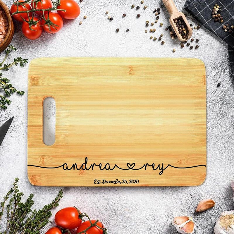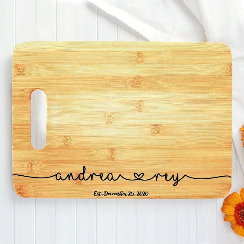 Personalized Name And Date Charcuterie Board with Heart Pattern Simple Gift for Couples
