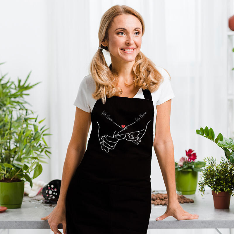 Personalized Name Apron with Hands Pattern Sweet Gift for Couples