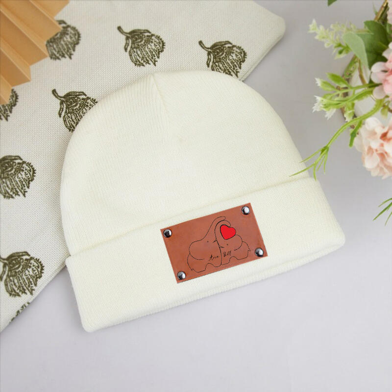 Personalized Name Beanie with Elephant Family Warm Gift for Favourite Person