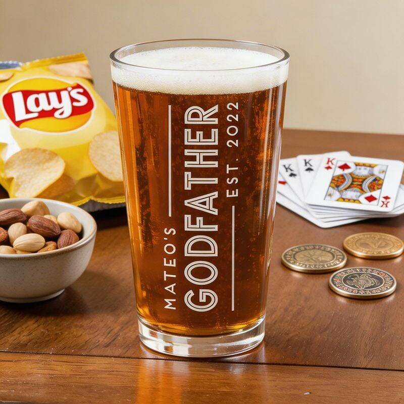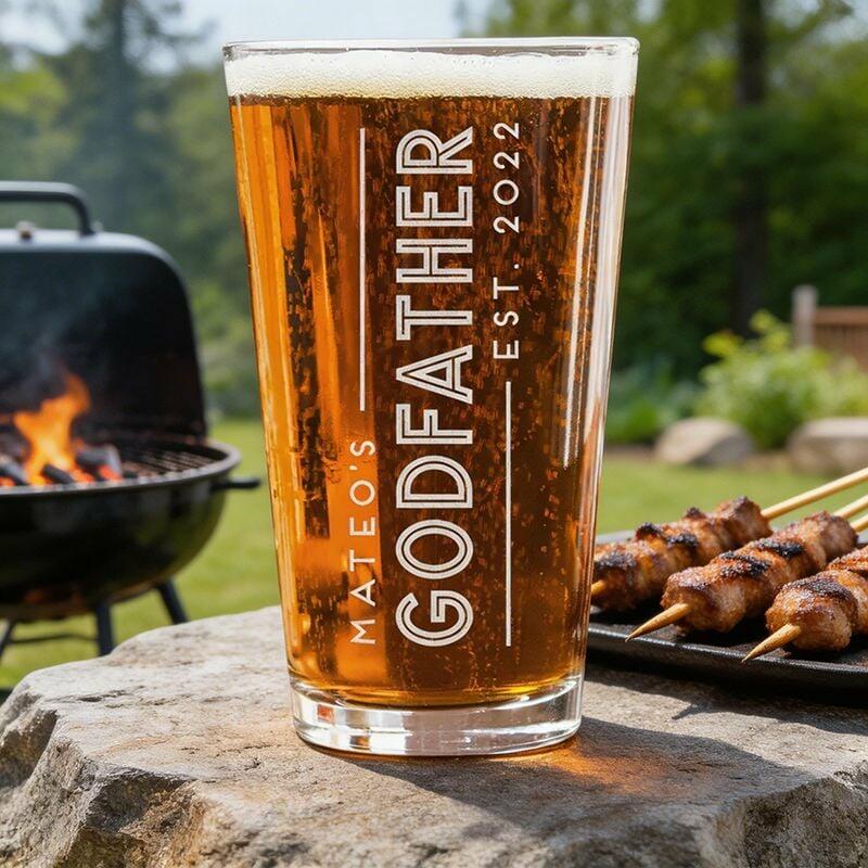 Personalized Name Beer Glass with Custom Date Simple Father's Day Present