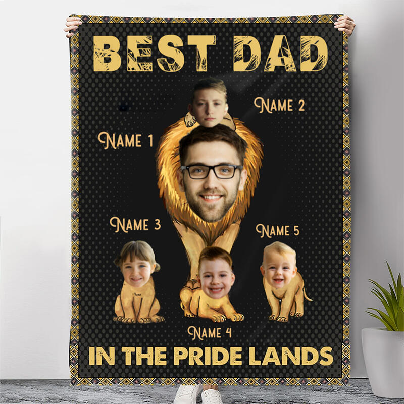 Personalized Name Blanket Lion Family Warm Gift for Best Dad