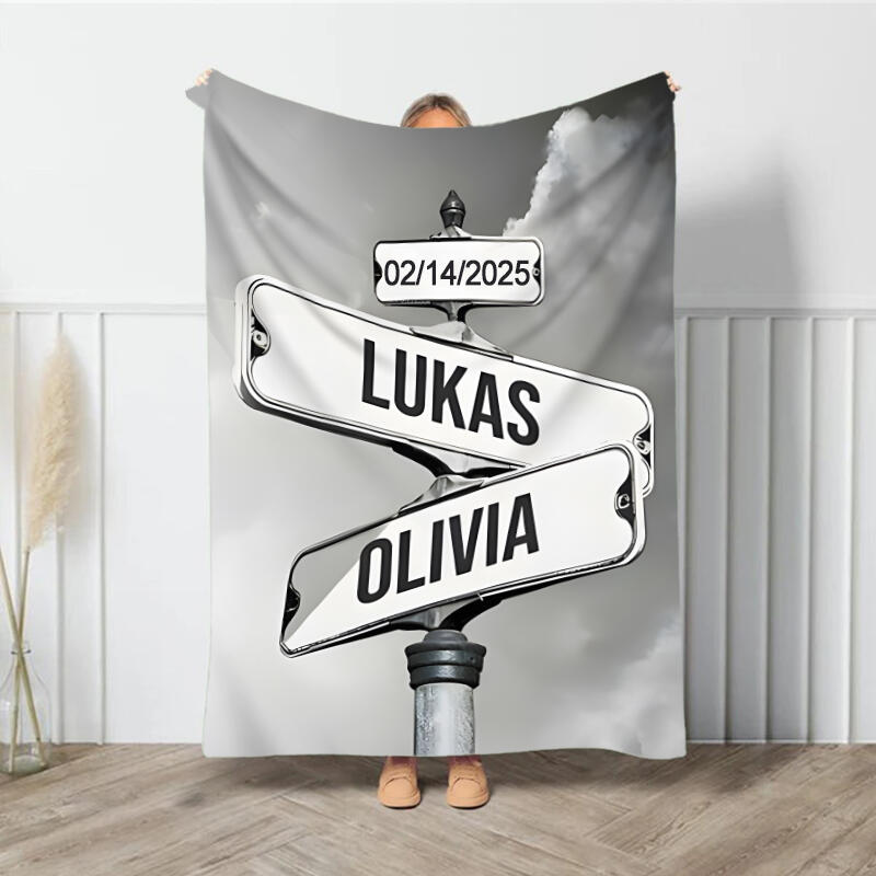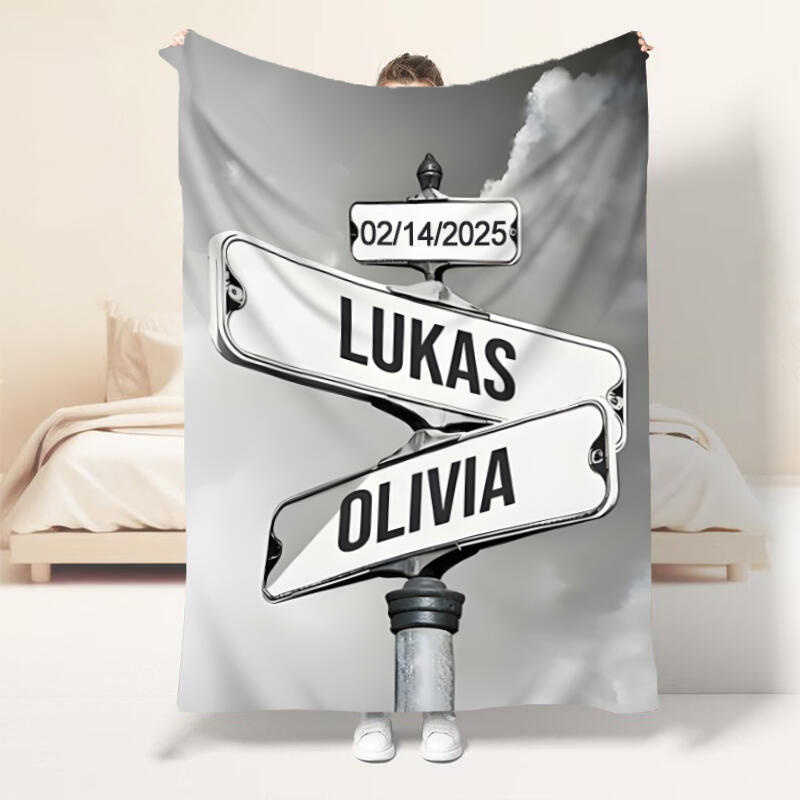 Personalized Name Blanket Road Sign Creative Present for Valentine's Day