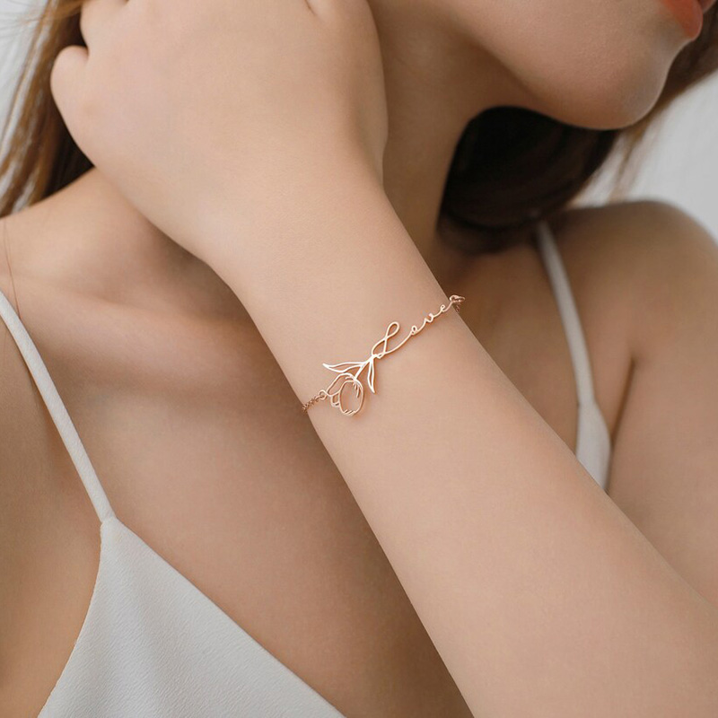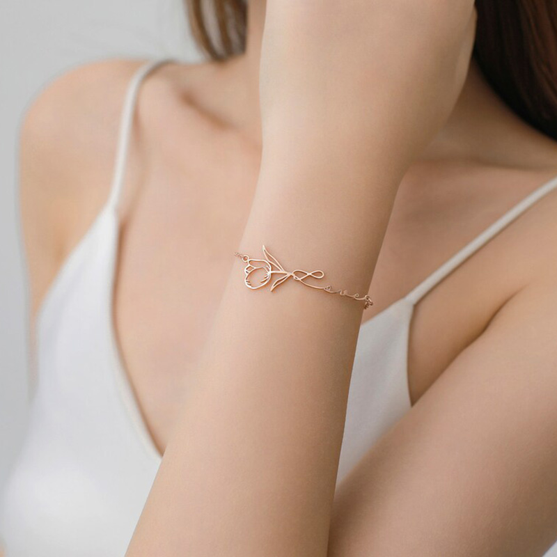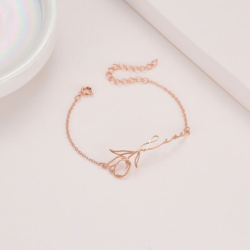 Personalized Name Bracelet With Birthday Flower Simple Gift For Friends