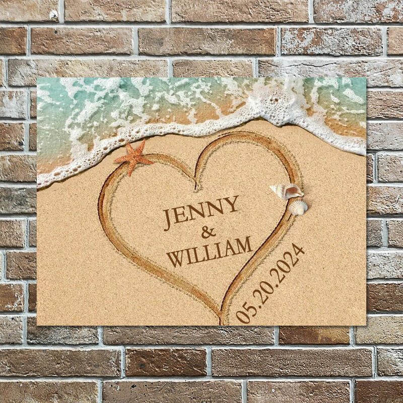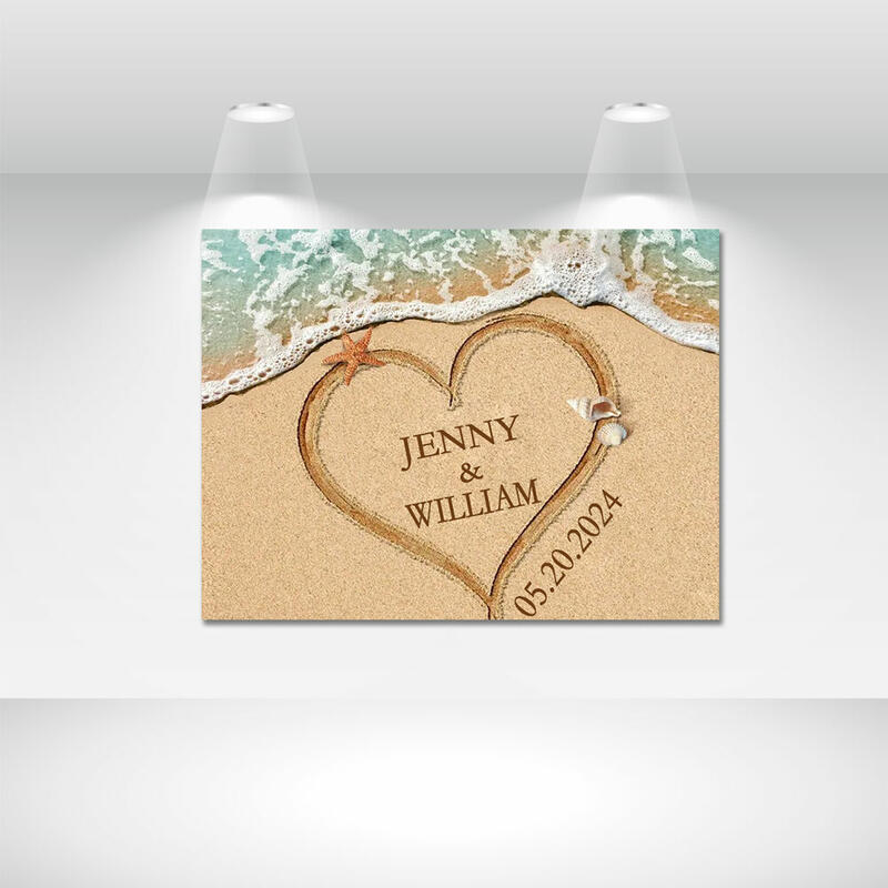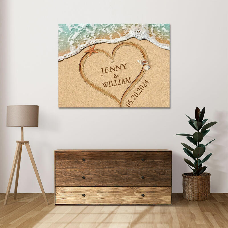 Personalized Name Canvas Wall Art Beach Background Simple Present for Couples