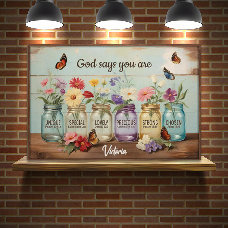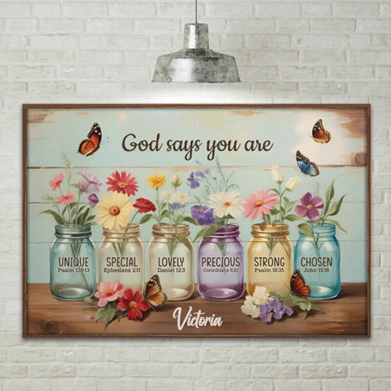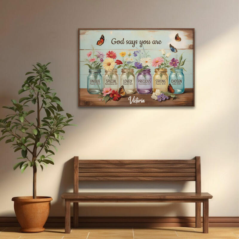 Personalized Name Canvas Wall Art with Colorful Butterflies And Flowers Pattern Best Gift for Her
