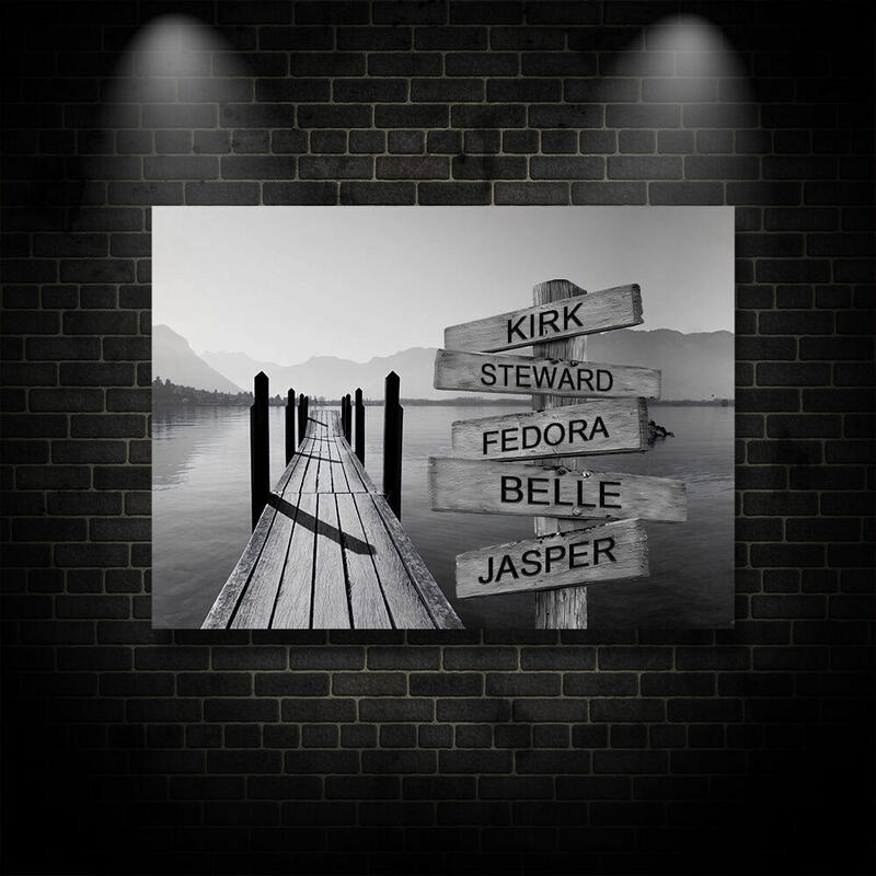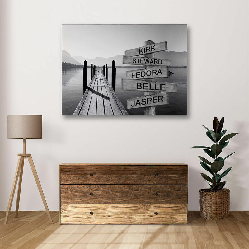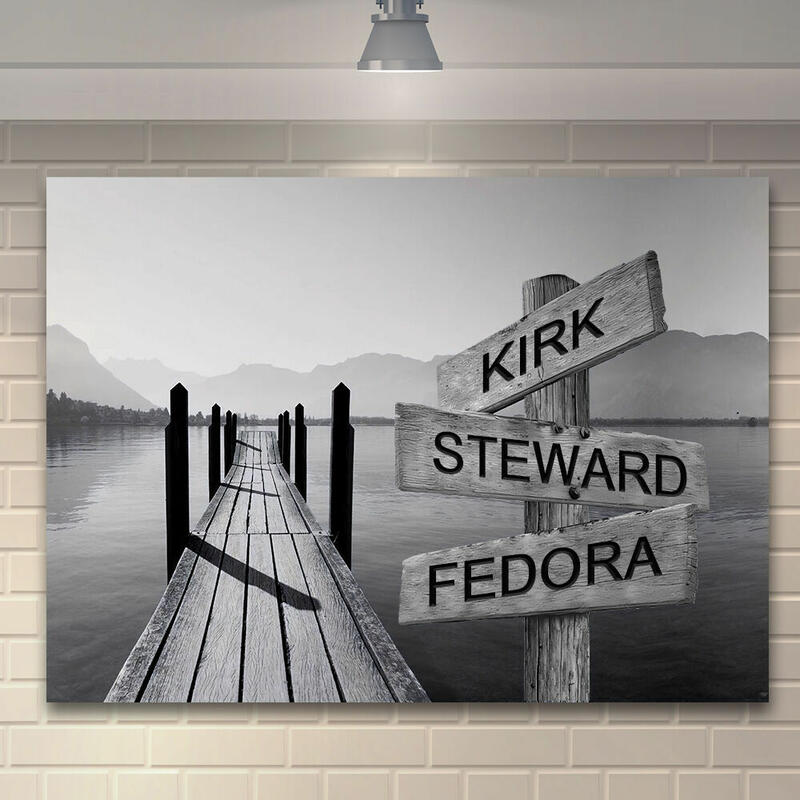 Personalized Name Canvas Wall Art with Dock Pattern Funny Gift for Family