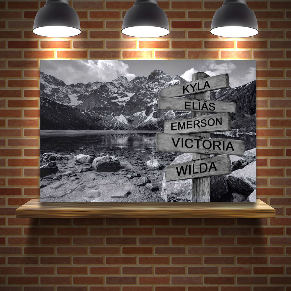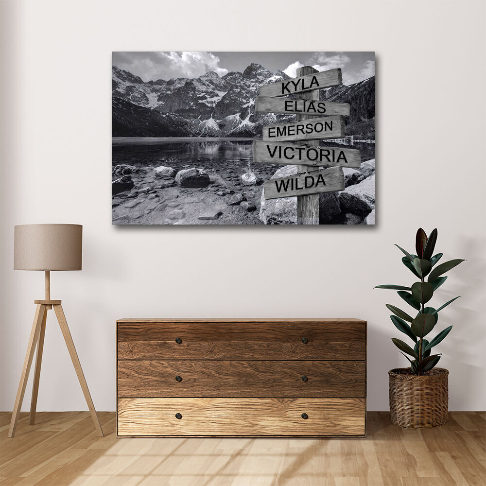 Personalized Name Canvas Wall Art with Lake Pattern Creative Present for Family