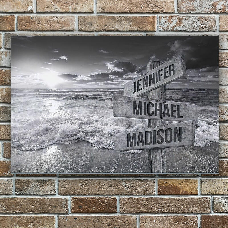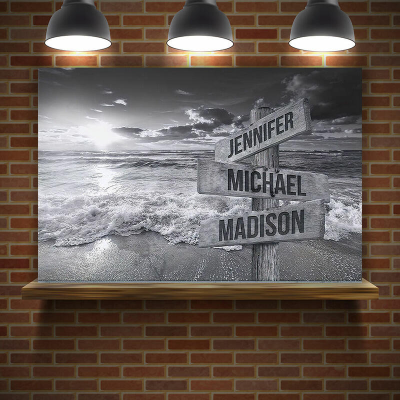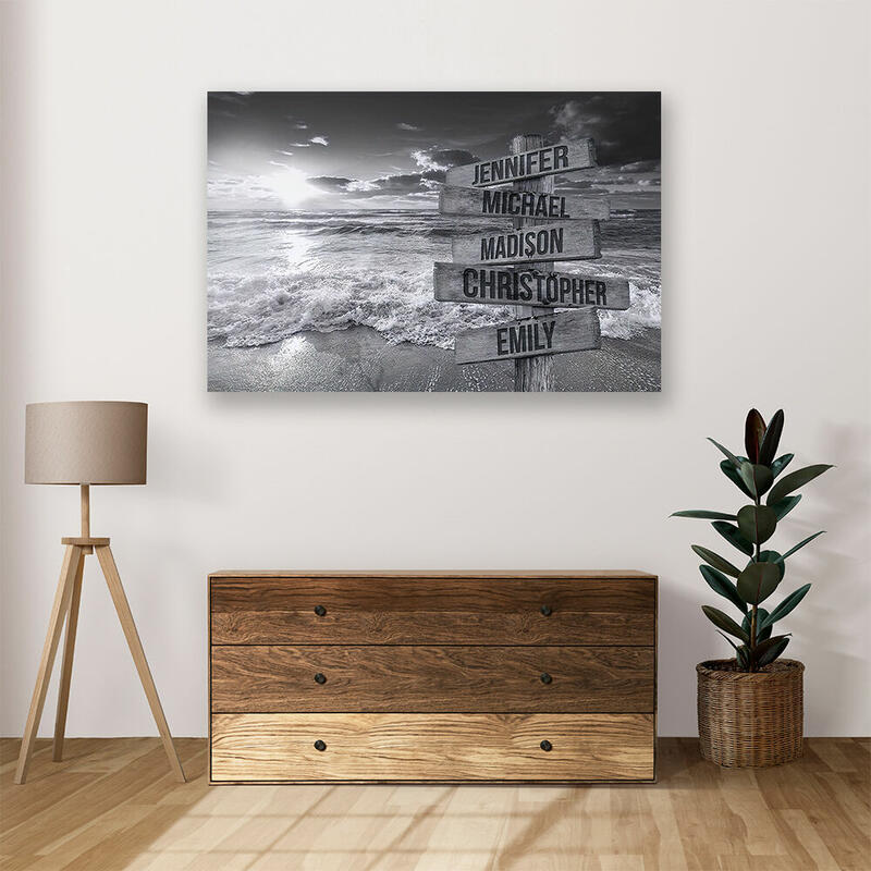 Personalized Name Canvas Wall Art with Ocean Sunset Pattern Beautiful Present for Family