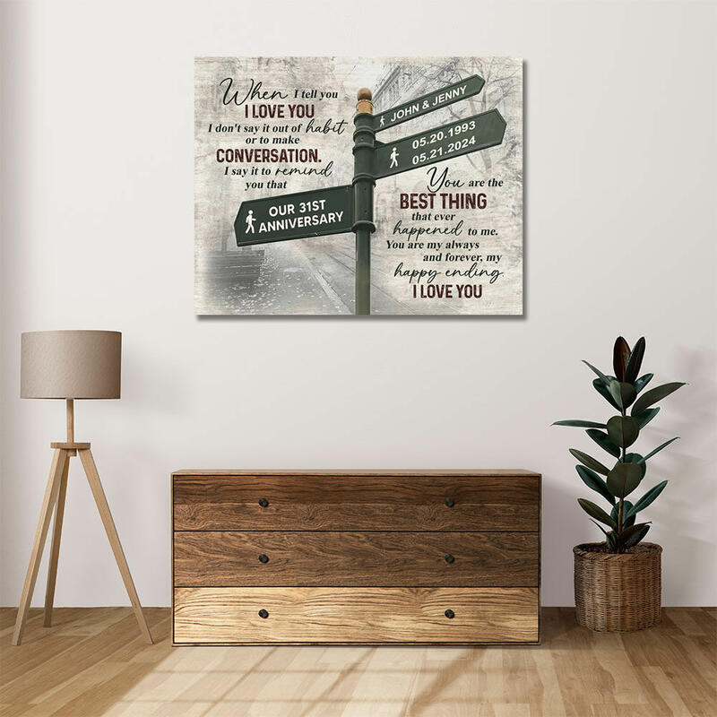 Personalized Name Canvas Wall Art with Retro Street Sign Best Gift for Couples "You're The Best Thing"
