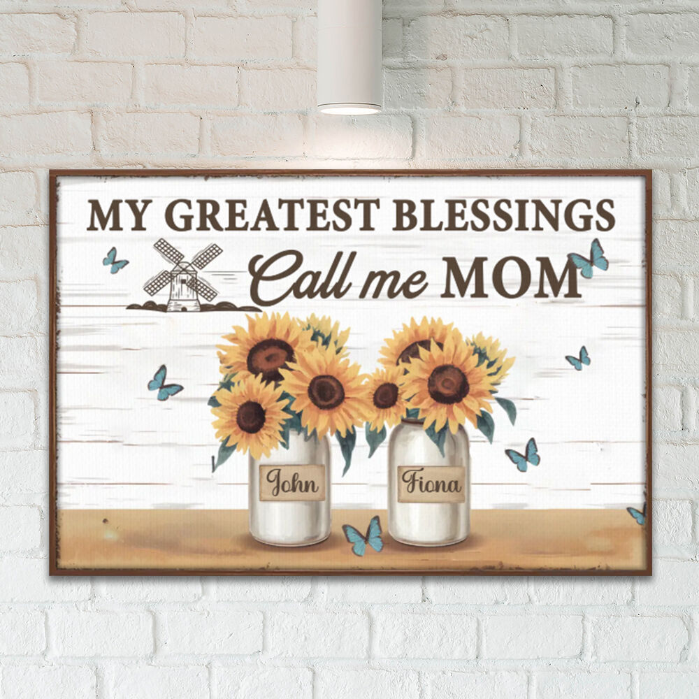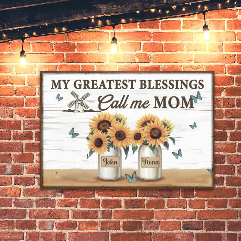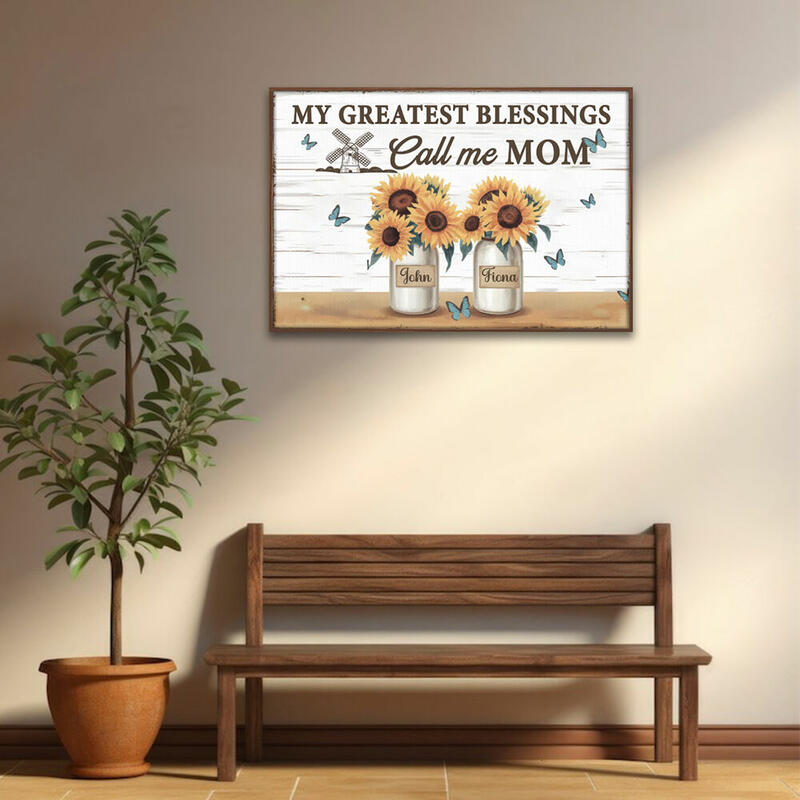 Personalized Name Canvas Wall Art with Sunflowers Pattern Beautiful Present for Mom