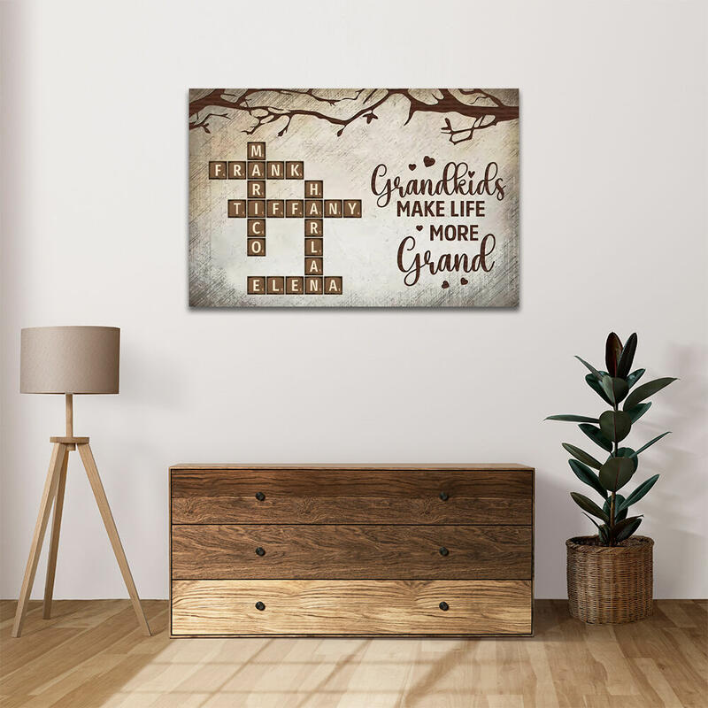 Personalized Name Crossword Canvas Wall Art Best Gift for Grandparents