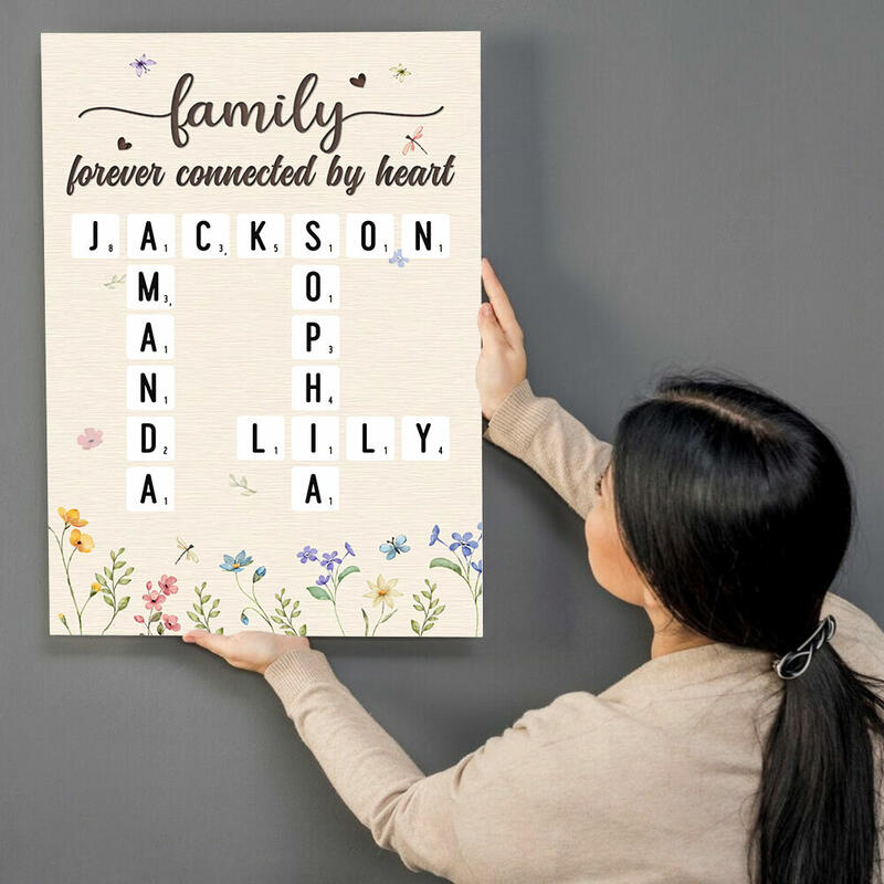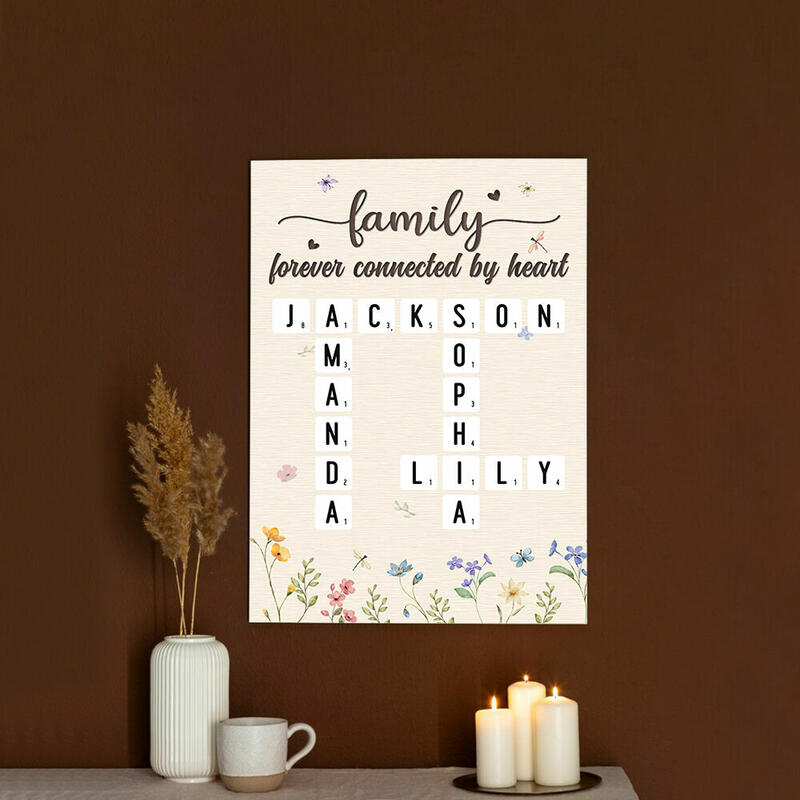 Personalized Name Crossword Canvas Wall Art with Flowers Pattern Perfect Gift for Family