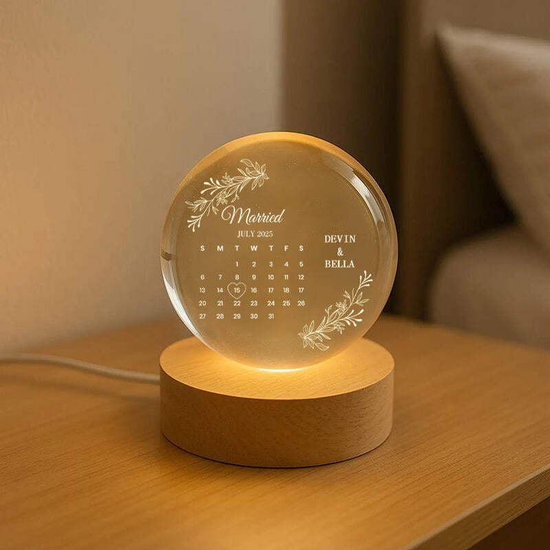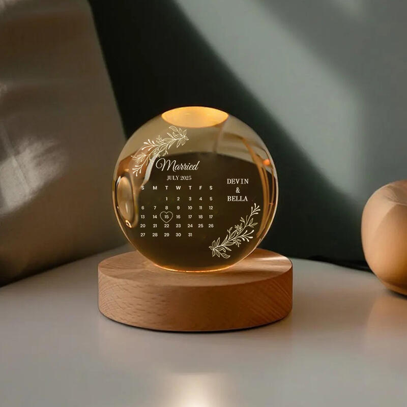 Personalized Name Crystal Ball Night Light Romantic Gift for Couples
