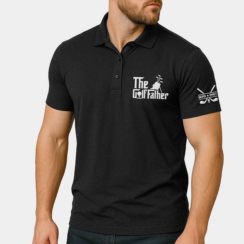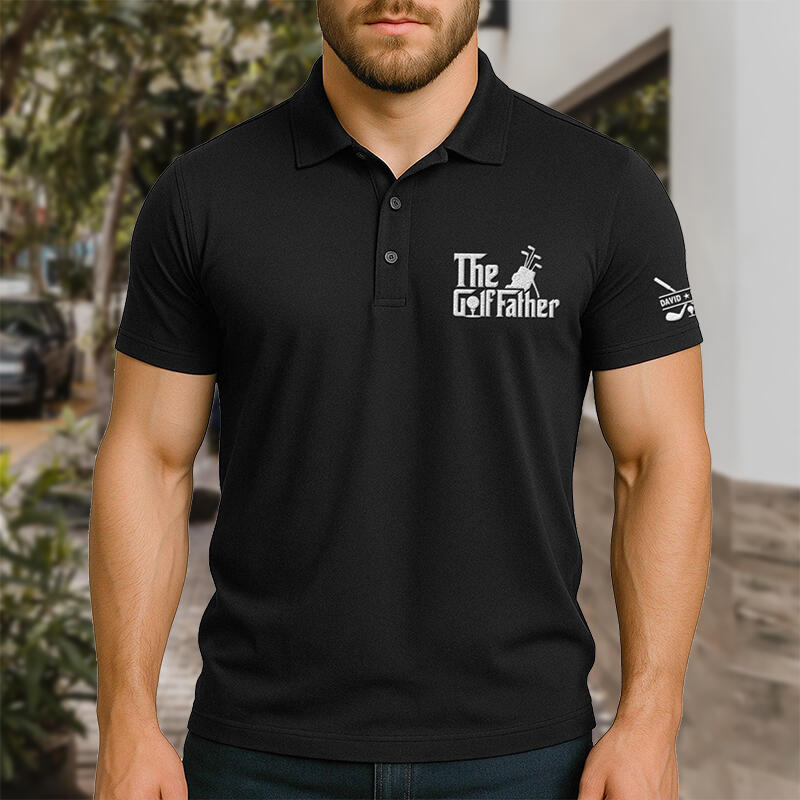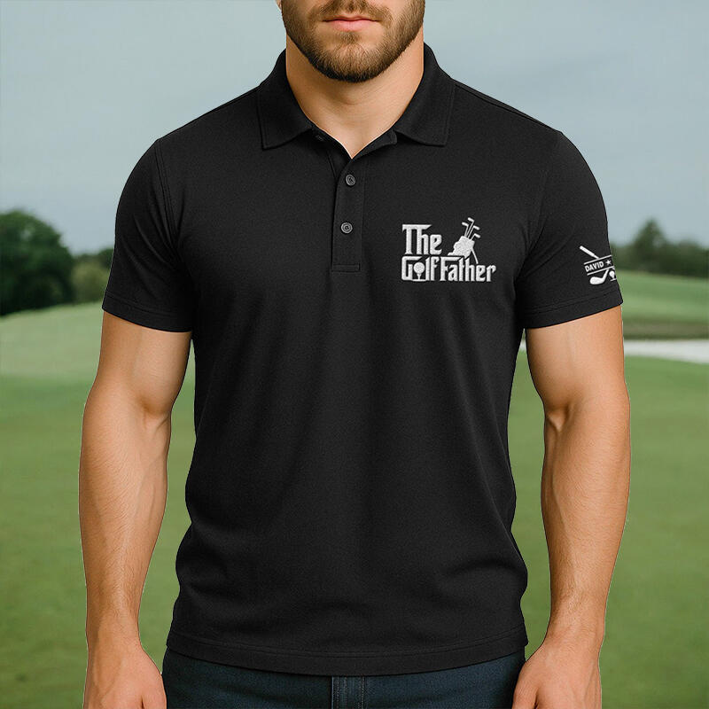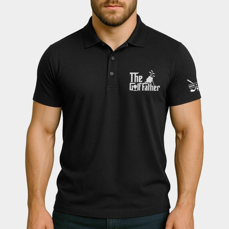 Personalized Name Embroidered Polo Shirt with Golf Bag Pattern Creative Gift for Father