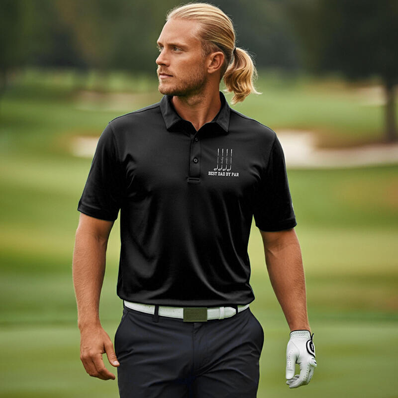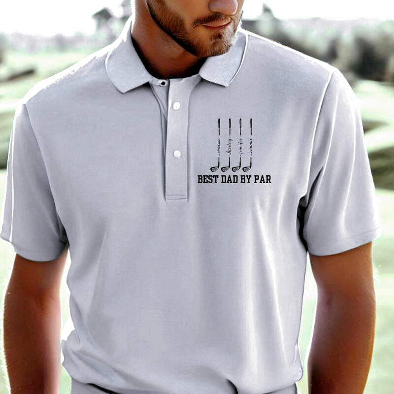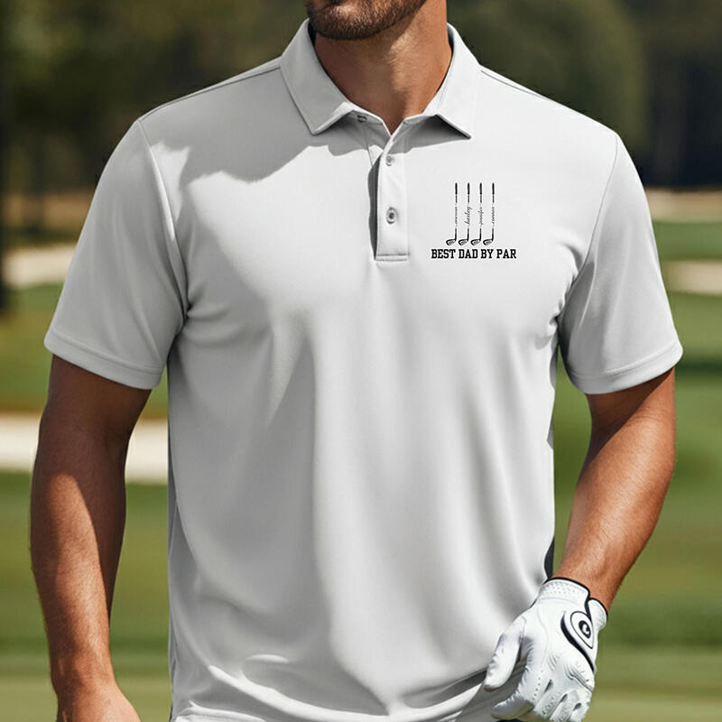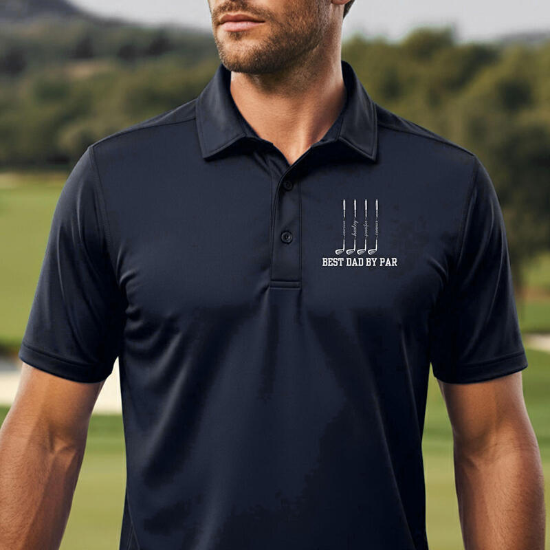 Personalized Name Embroidered Polo Shirt with Golf Clubs Pattern Funny Gift for Family