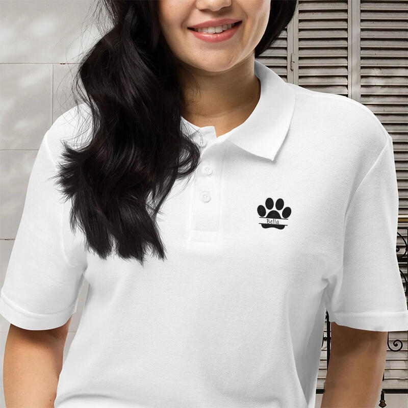 Personalized Name Embroidered Polo Shirt with Paw Print Exquisite Gift for Pet Lover