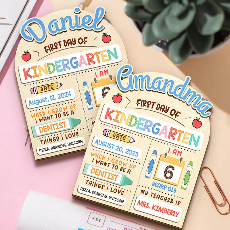 Personalized Name First Day Of School Sign with Apples Pattern Cute Present for Kids