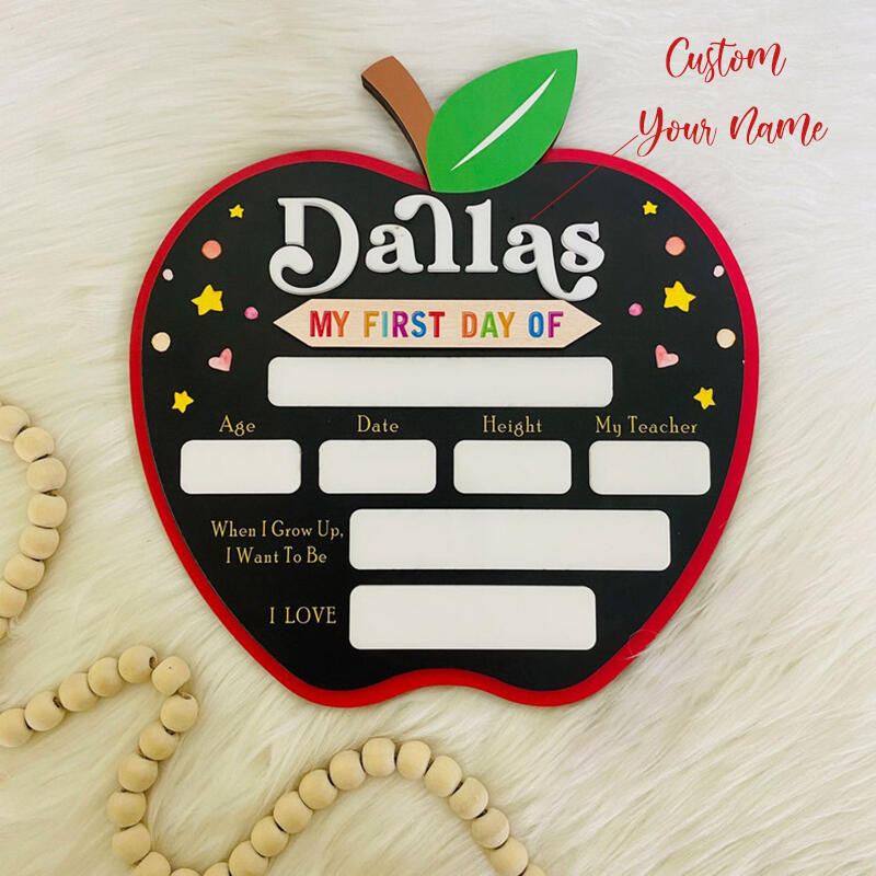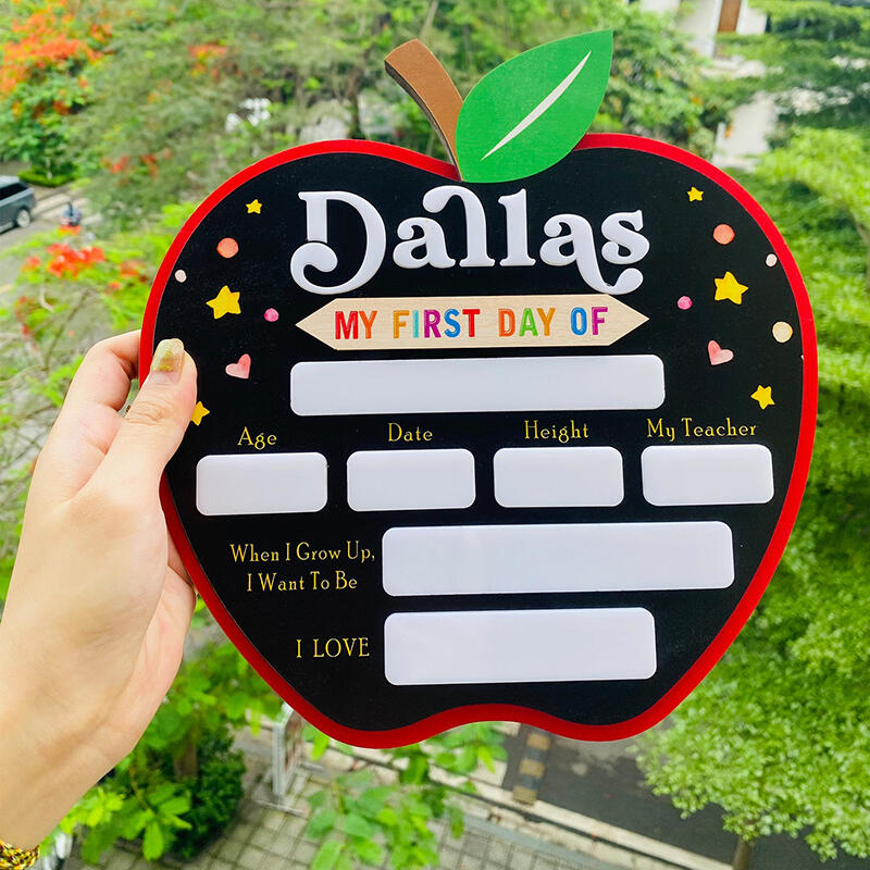 Personalized Name First Day Of School Sign with Custom Name Apple Shaped Cute Gift for Kids
