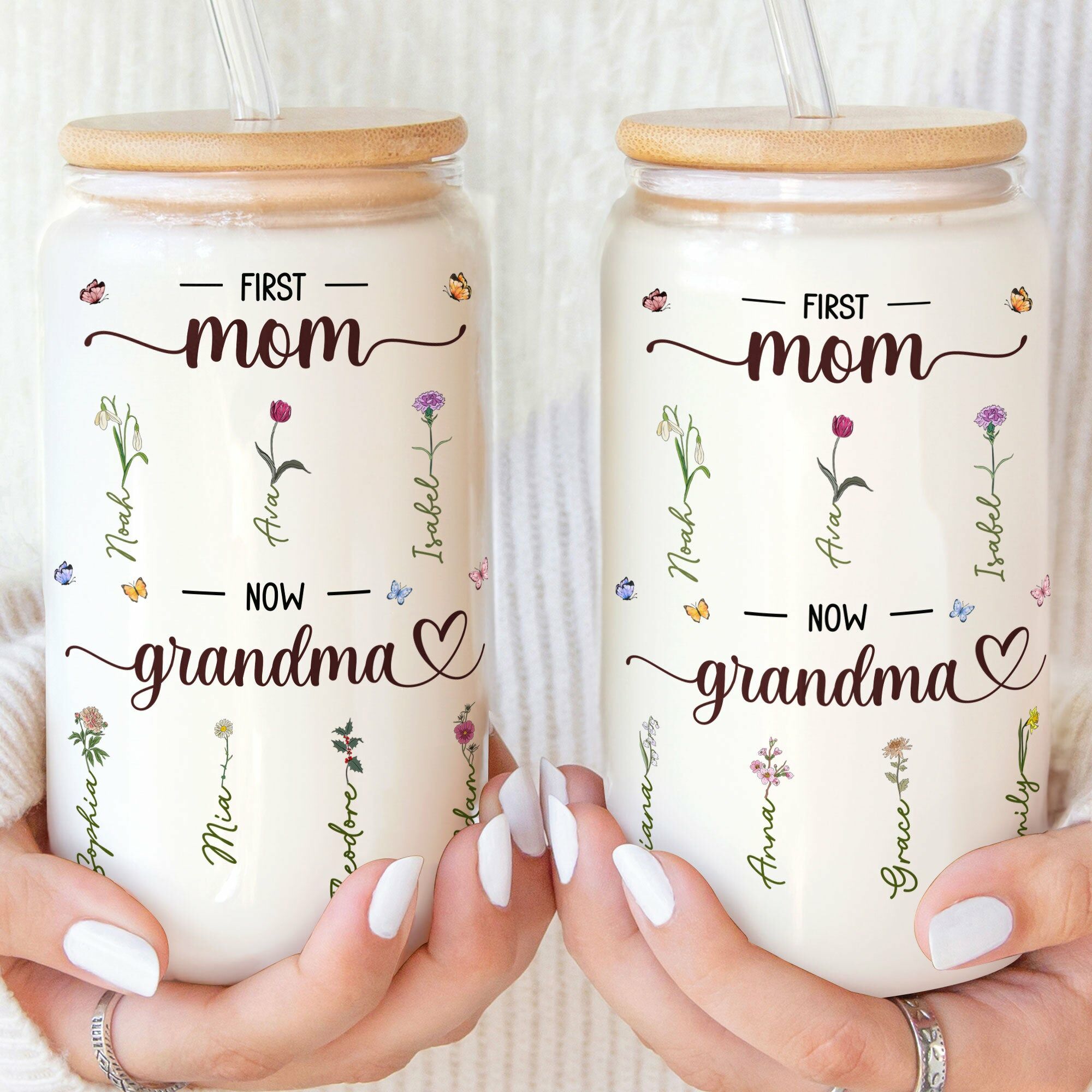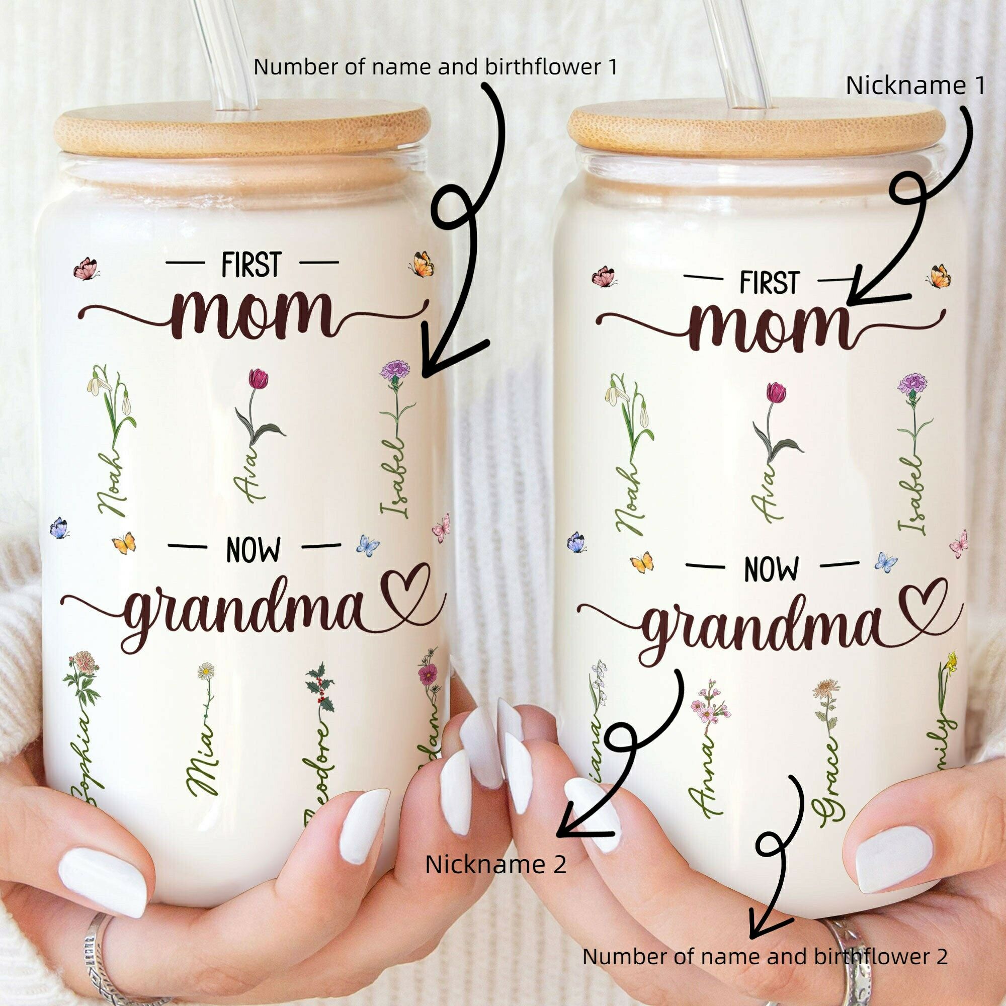 Personalized Name Glass Cup with Lid And Straw And Custom Birth Flower Best Gift for Mother's Day