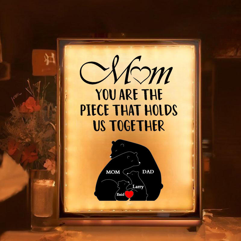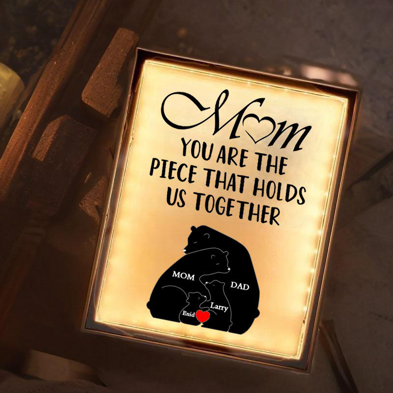 Personalized Name Mirror Lamp Bear Family Warm Gift for Best Mom
