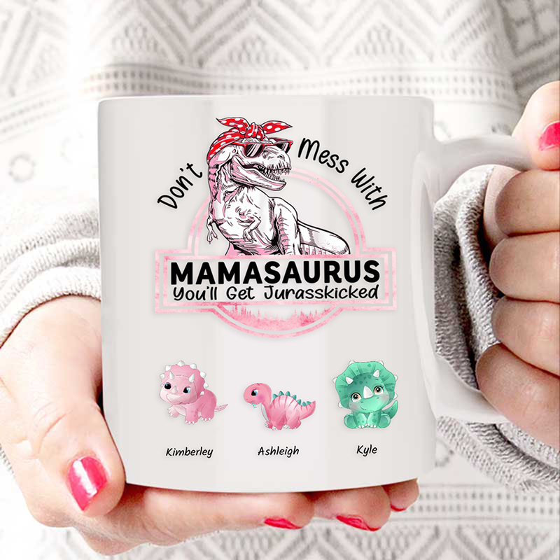 Personalized Name Mug with Mamasaurus Pattern Creative Gift for Mother's Day "You'll Get Jurasskicked"