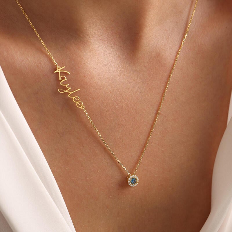 Personalized Name Necklace with Birthstone Exquisite Christmas Gift for Her
