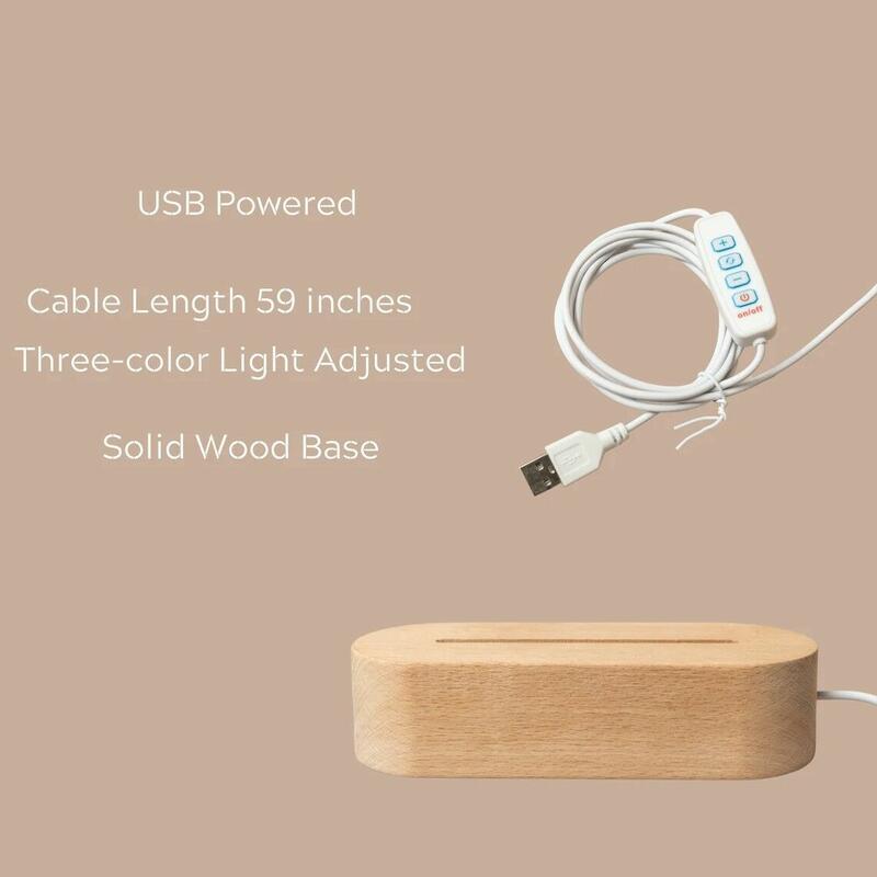 In order to bring children a peaceful sleep and warm nights, we specially designed this unique children's night light. The lamp part is made of acrylic material, and the base is made of wood. It provides children with comfortable lighting effects through soft light. Acrylic’s transparency and light-diffusing effect fill the room with a soft glow, creating a warm and peaceful atmosphere.