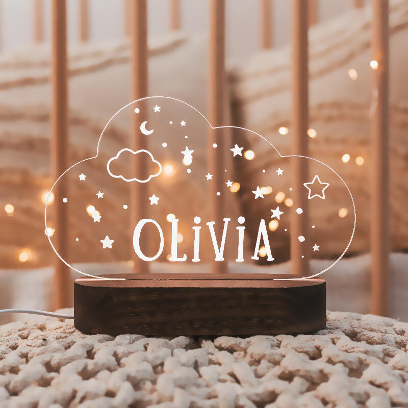 Personalized Name Night Light with Cloud And Stars Pattern Precious Present for Baby