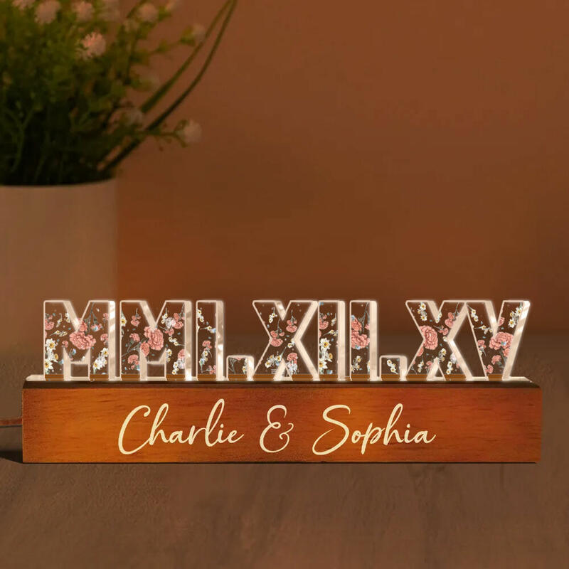 Personalized Name Night Light with Custom Birthflower Beautiful Gift for Couples