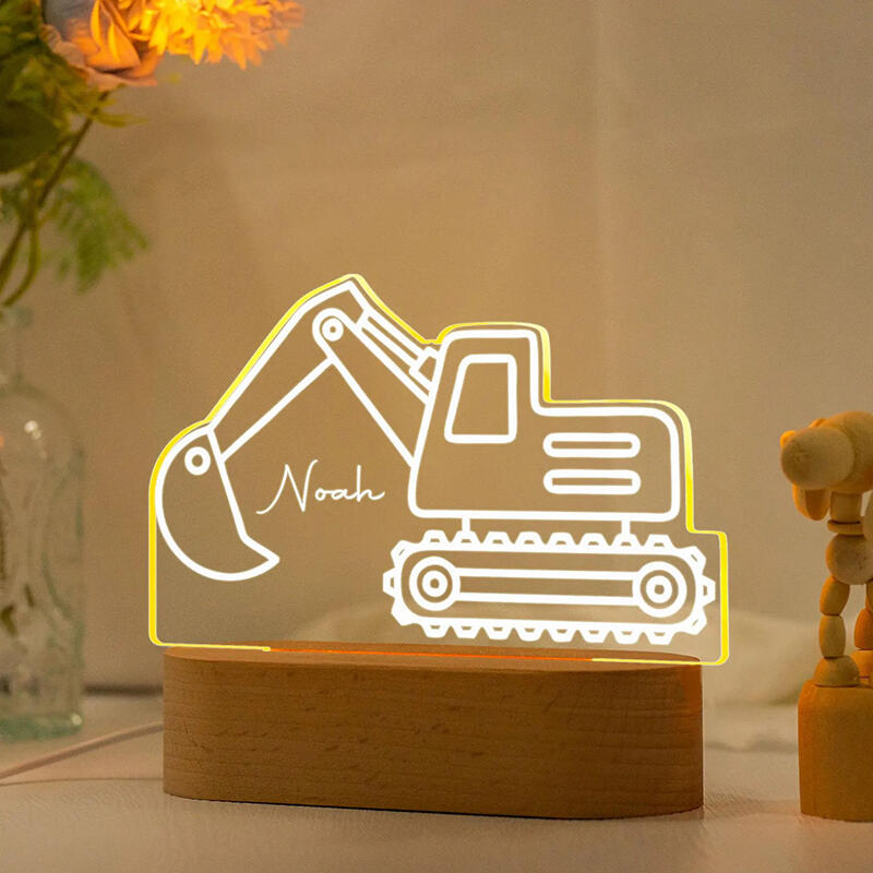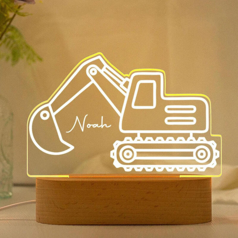 Personalized Name Night Light with Excavator Pattern Cool Gift for Child