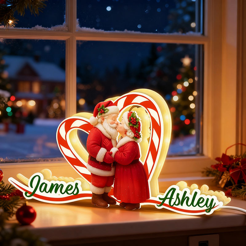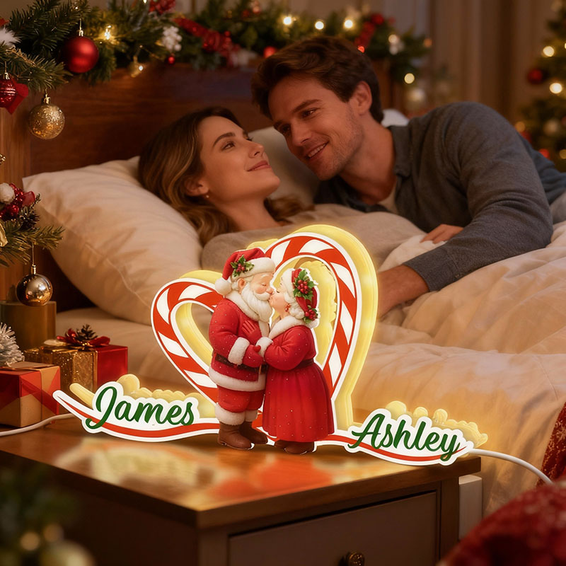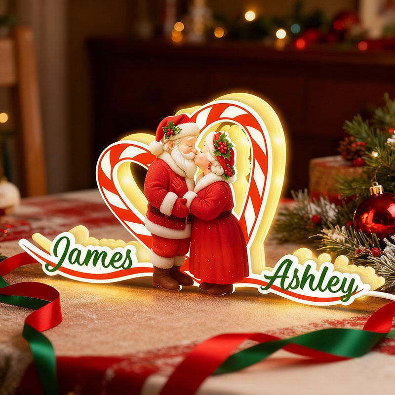 Personalized Name Night Light with Santa Claus Pattern Sweet Gift for Couples