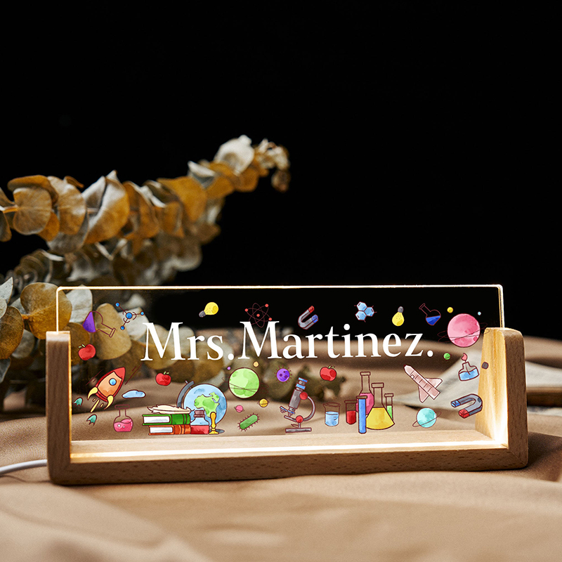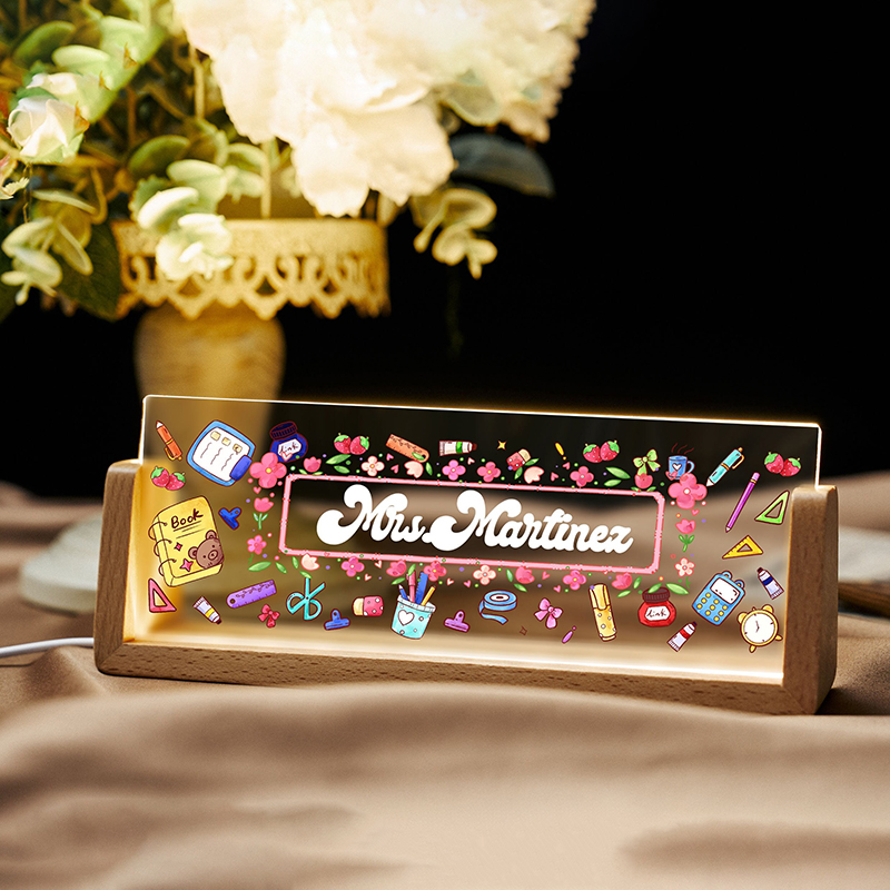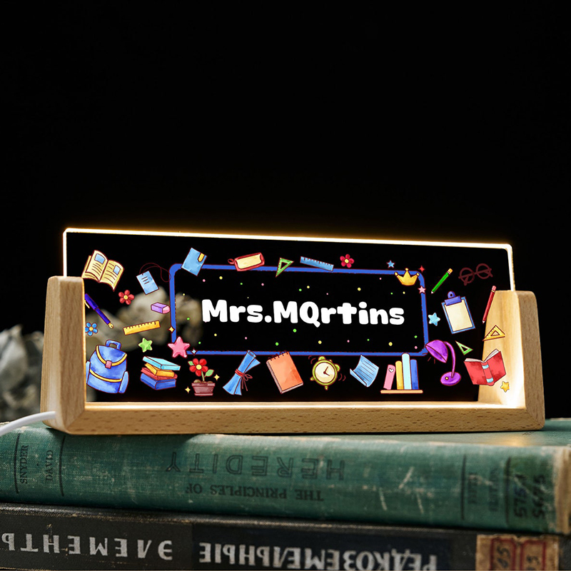 Personalized Name Night Light with Stationery Pattern Perfect Gift for Teacher