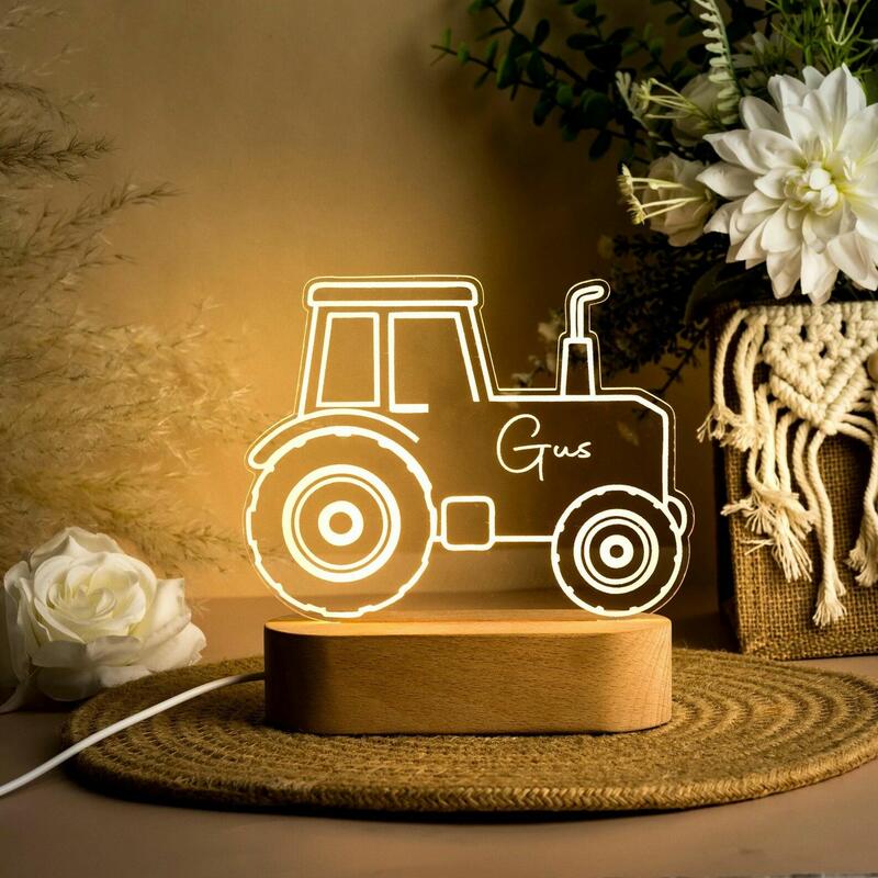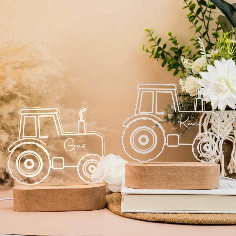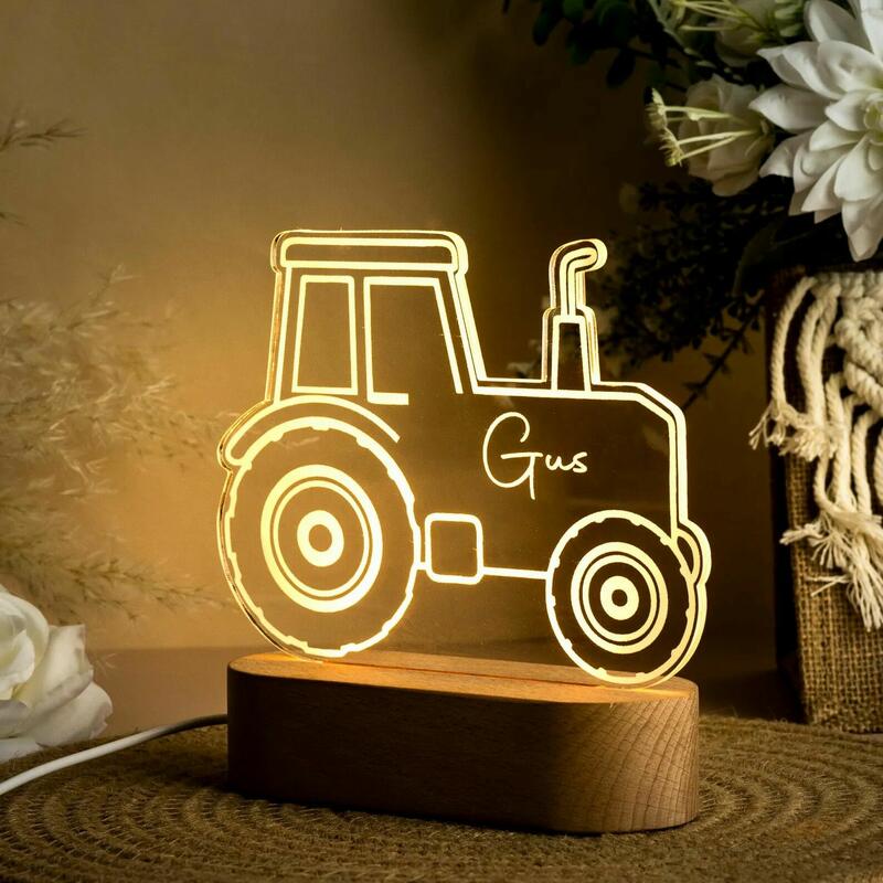 Personalized Name Night Light with Tractor Creative Gift for Child