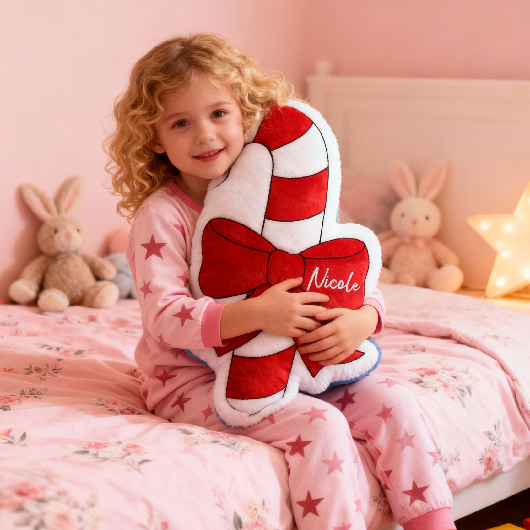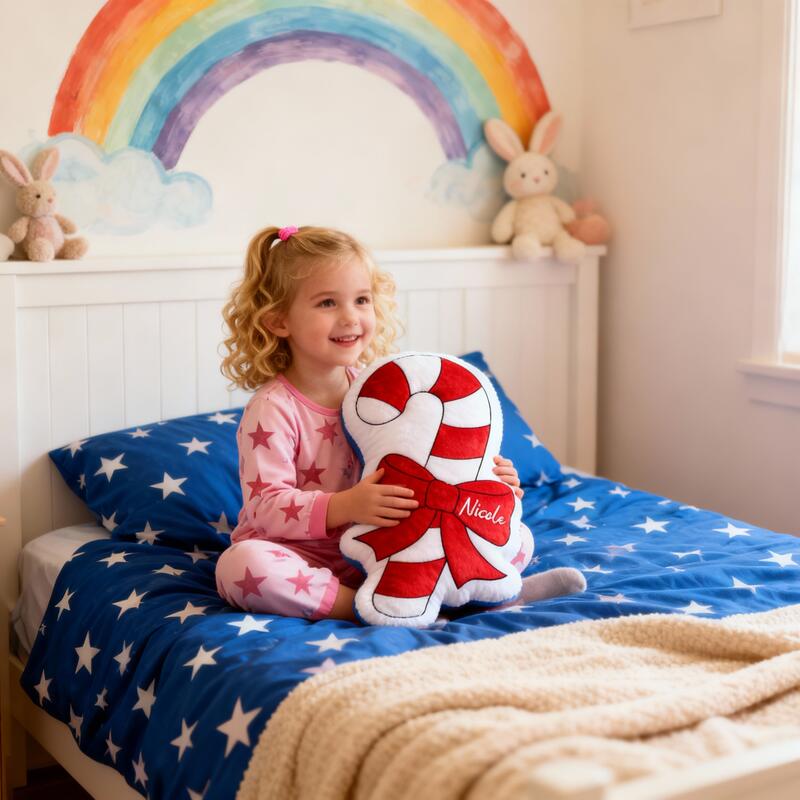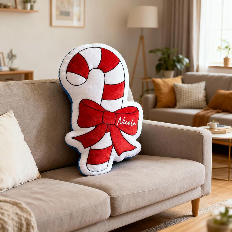 Personalized Name Pillow with Candy Cane Pattern Best Gift for Christmas