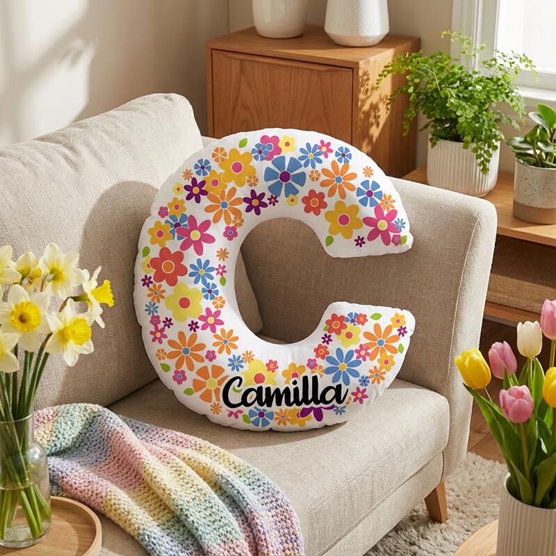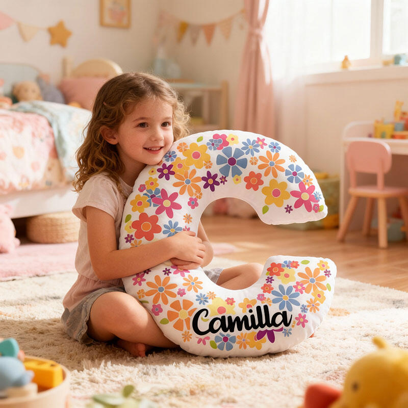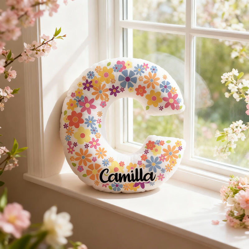 Personalized Name Pillow with Colorful Flowers Pattern Best Gift for Kids
