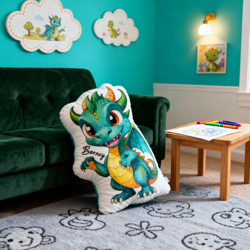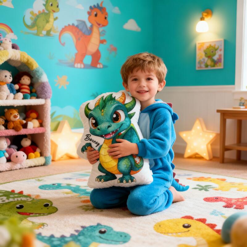 Personalized Name Pillow with Dinosaur Design Cool Gift for Children