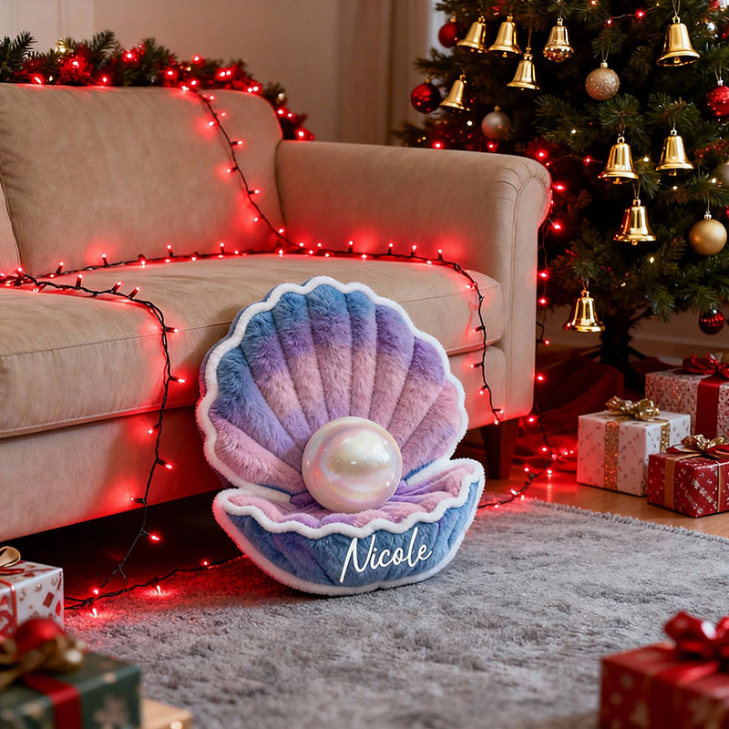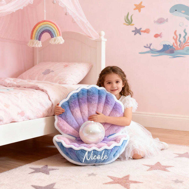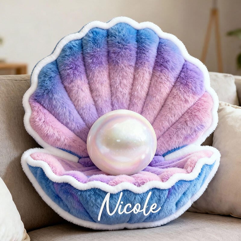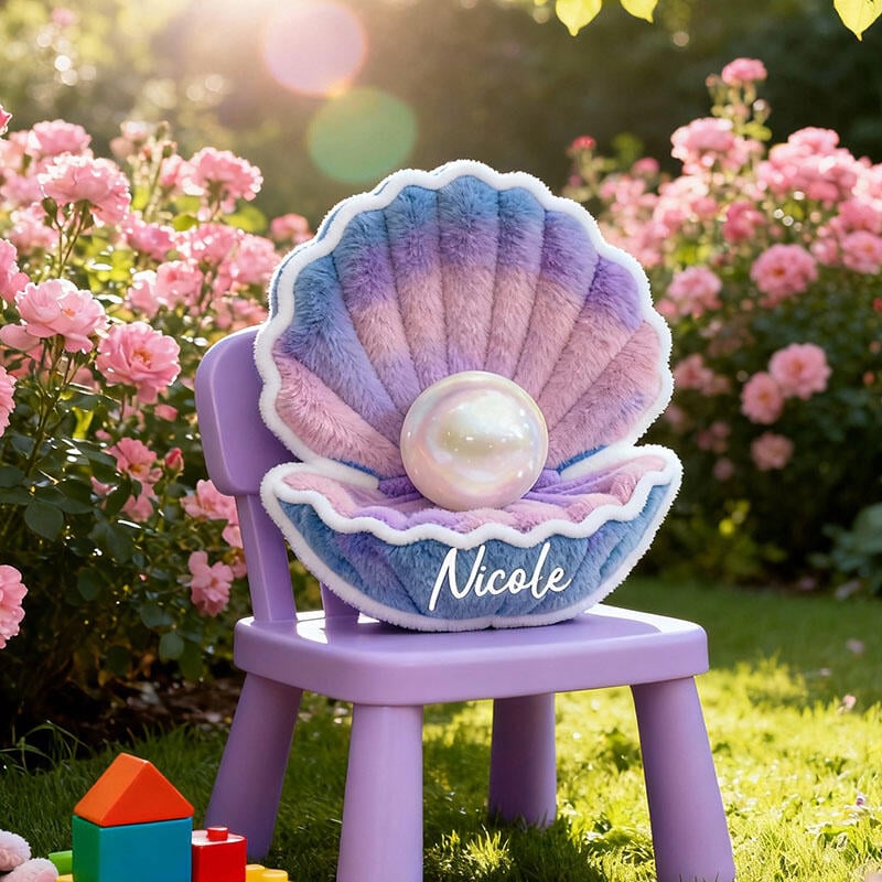 Personalized Name Pillow with Purple Seashell and Pearl Design Creative Gift for Your Daughter