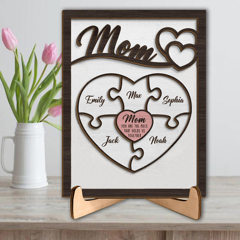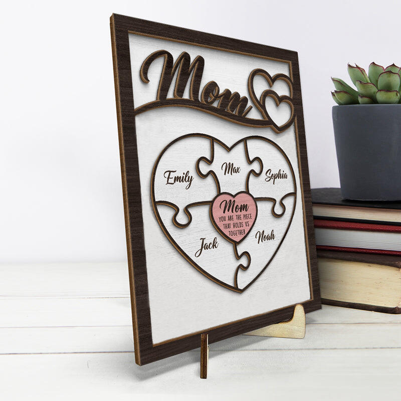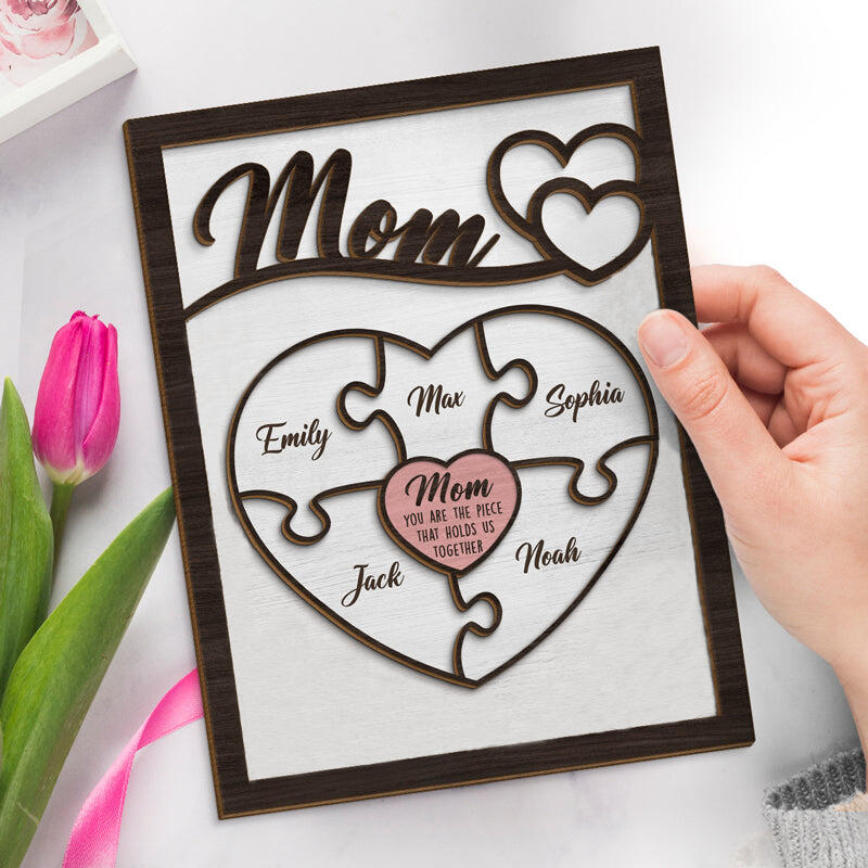 Personalized Name Puzzle Frame The Piece That Holds Us Together Custom Heart Design Meaningful Gift for Best Mom
