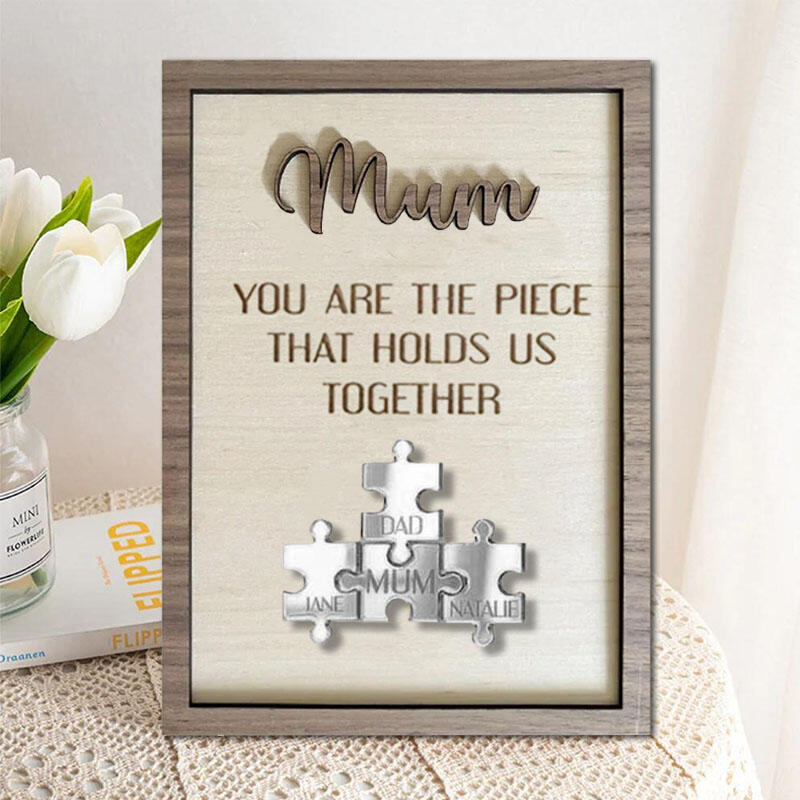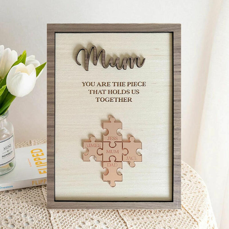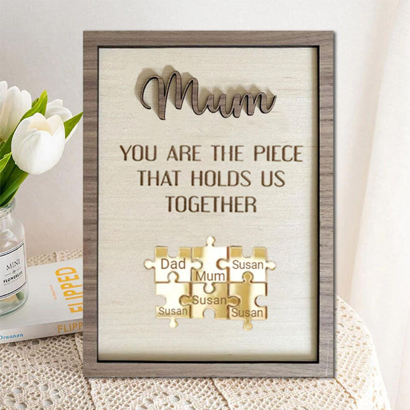 An exquisite personalized gift for the most special lady in our lives ~ Mom! Our mother is the one who keeps us together. The puzzle signature is the perfect gift for anniversary, birthday, mother's day, father's day or any day! It can be used as a souvenir as well as a house decoration, you deserve it.